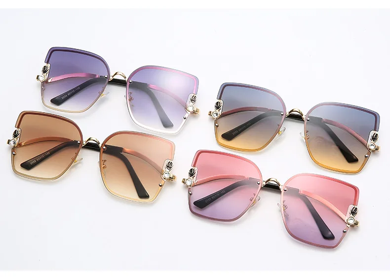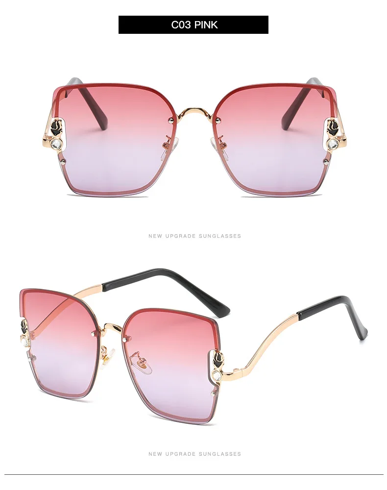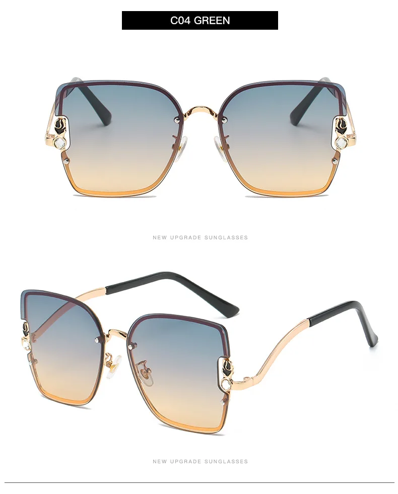Rimless Square Sunglasses Women Men Diamond Sun Glasses Blue Tea Eyewear Female  Brand Eyeglasses UV400 Oculos