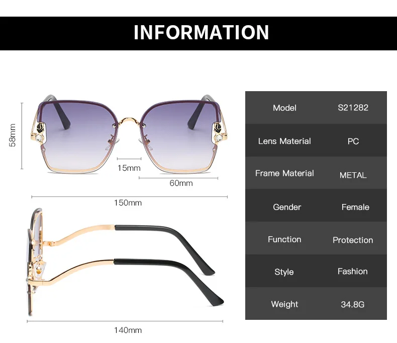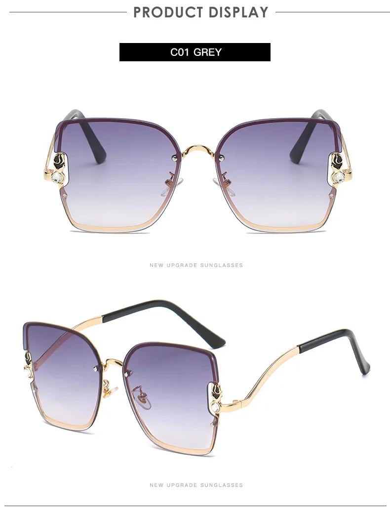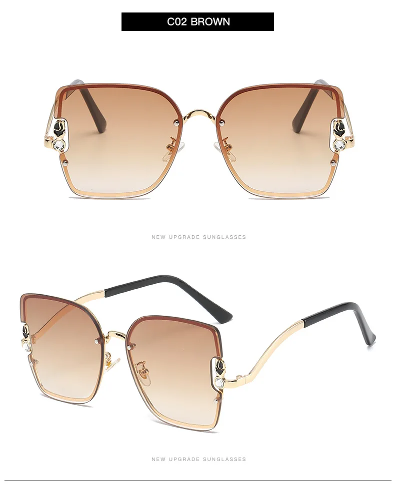 Rimless Square Sunglasses Women Men Diamond Sun Glasses Blue Tea Eyewear Female Brand Eyeglasses UV400 Oculos
