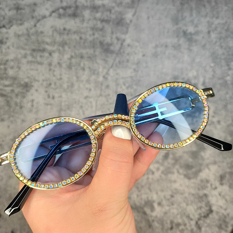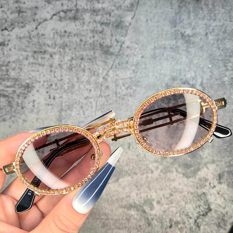 Round Steampunk Small Blingbling Sunglasses For Women Men 2023 Diamond  Designer Gradient Gothic Sunglasses Men Feminino