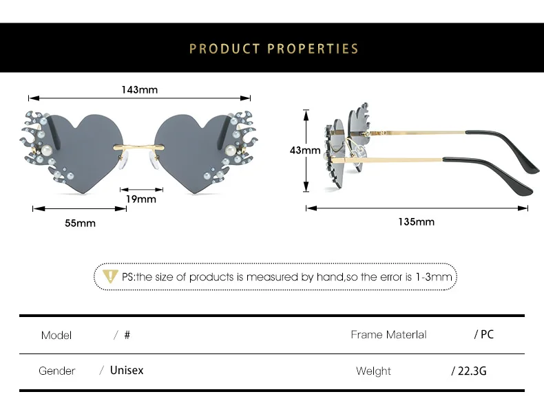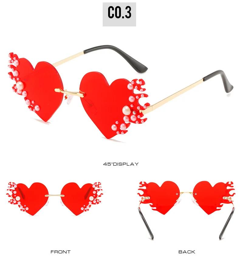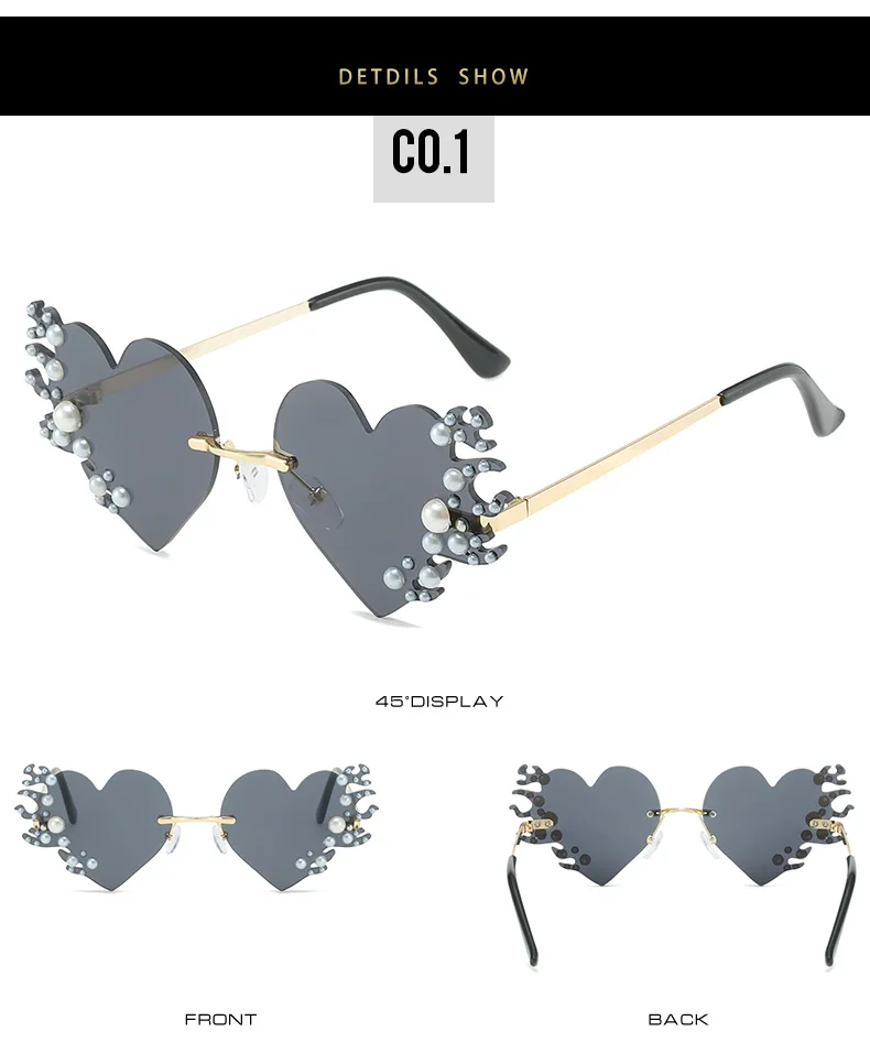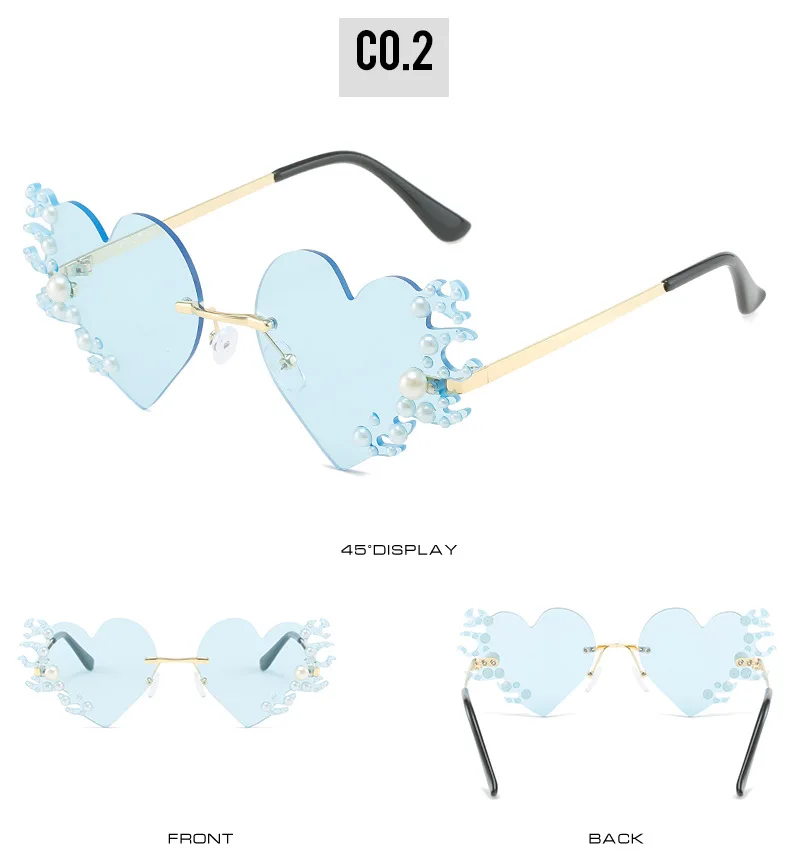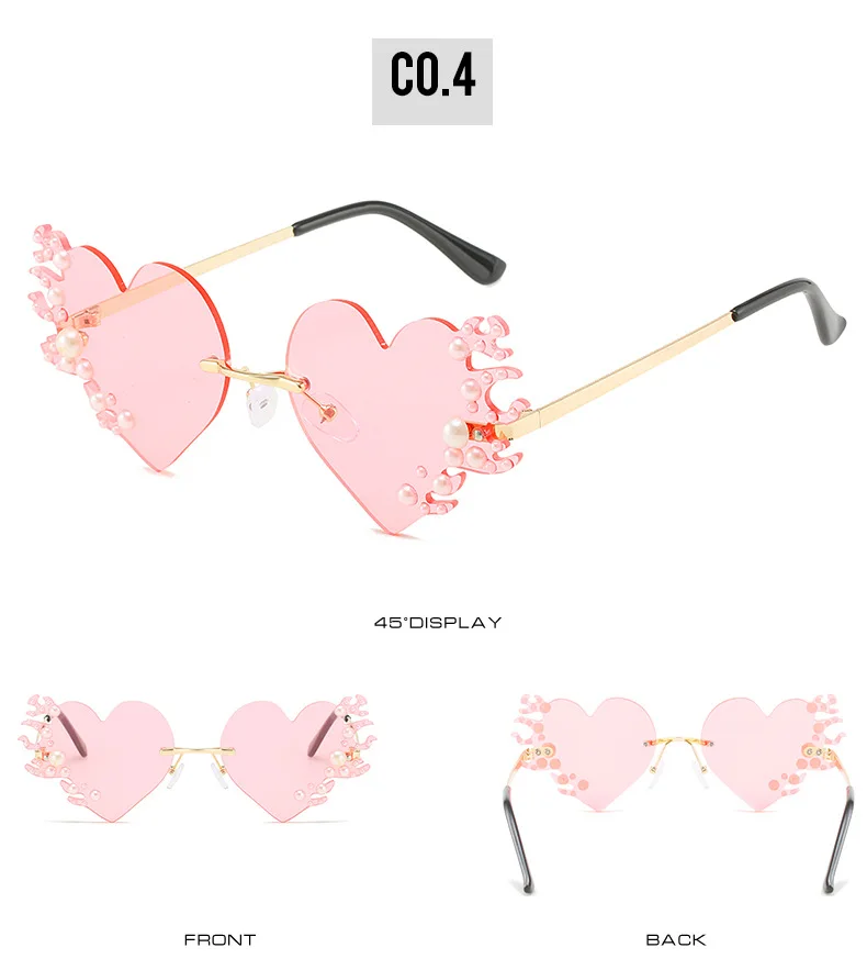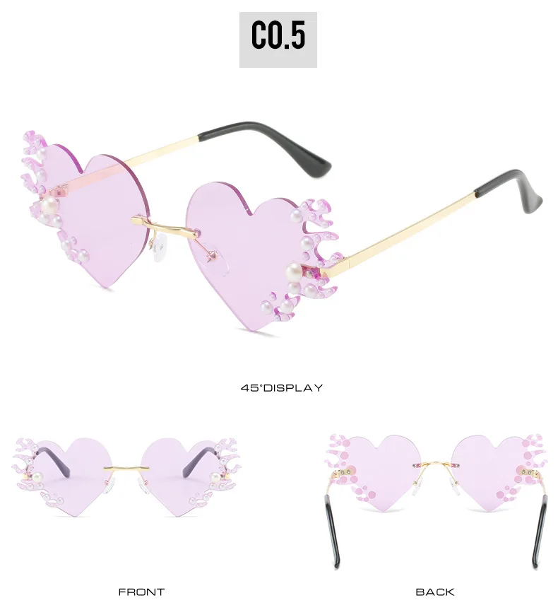 Sexy Ladies Heart Shaped Sun Glasses Trend Style Eyewear 2023  Brand Designer Love Pearl Decor Rimless Sunglasses