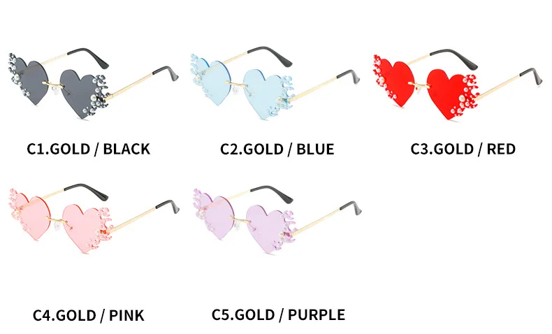 Name : Rimless Heart Sunglasses Women Men,Sun Glasses Men Driver Shades Oculos UV400