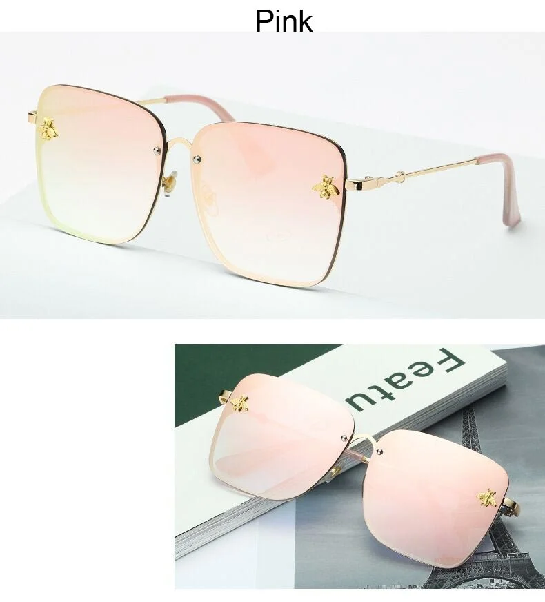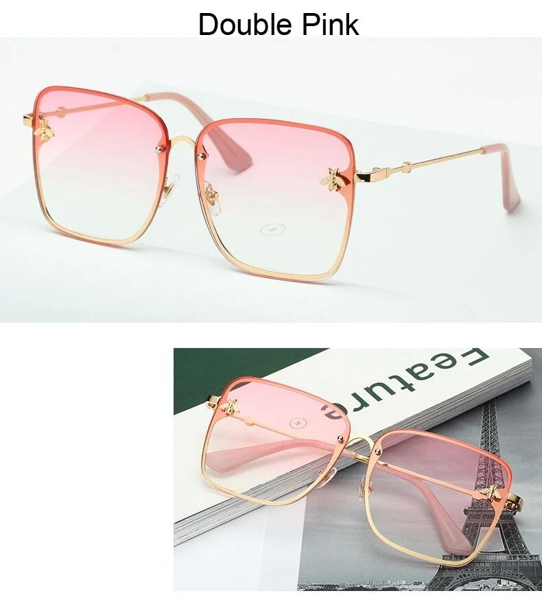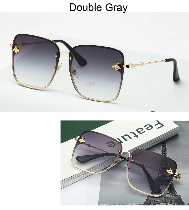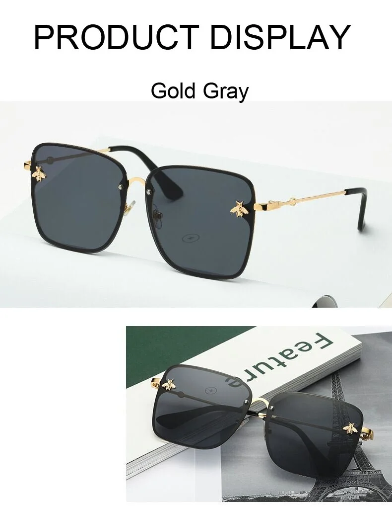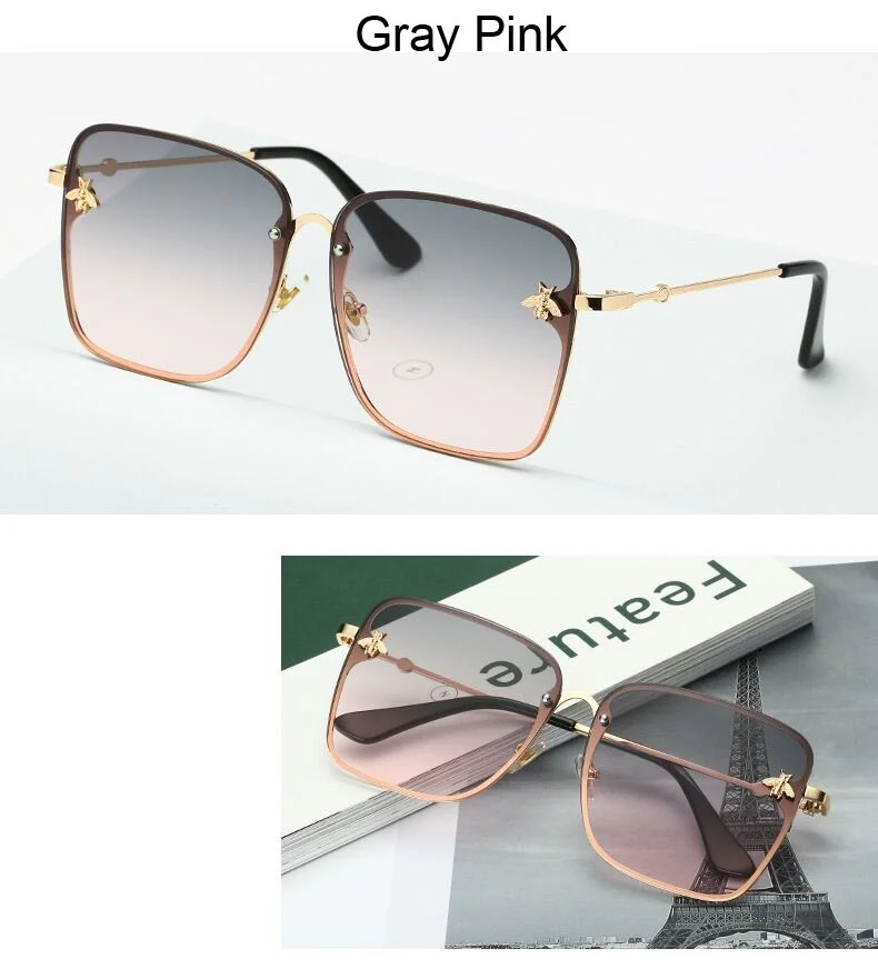 Square Bee Sunglasses Women Brand Designer Rimless Sun Glasses Shades Metal Gradient Ladies Classic Retro Eyeglasses