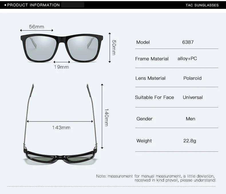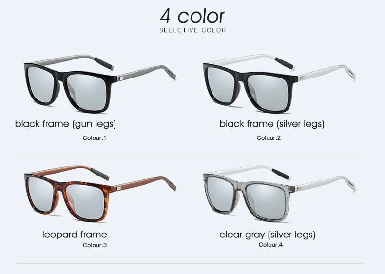 Square Chameleon Sunglasses Male Polarized Photochromic Discoloration Sun Glasses Men Women Oculos De Sol Masculino