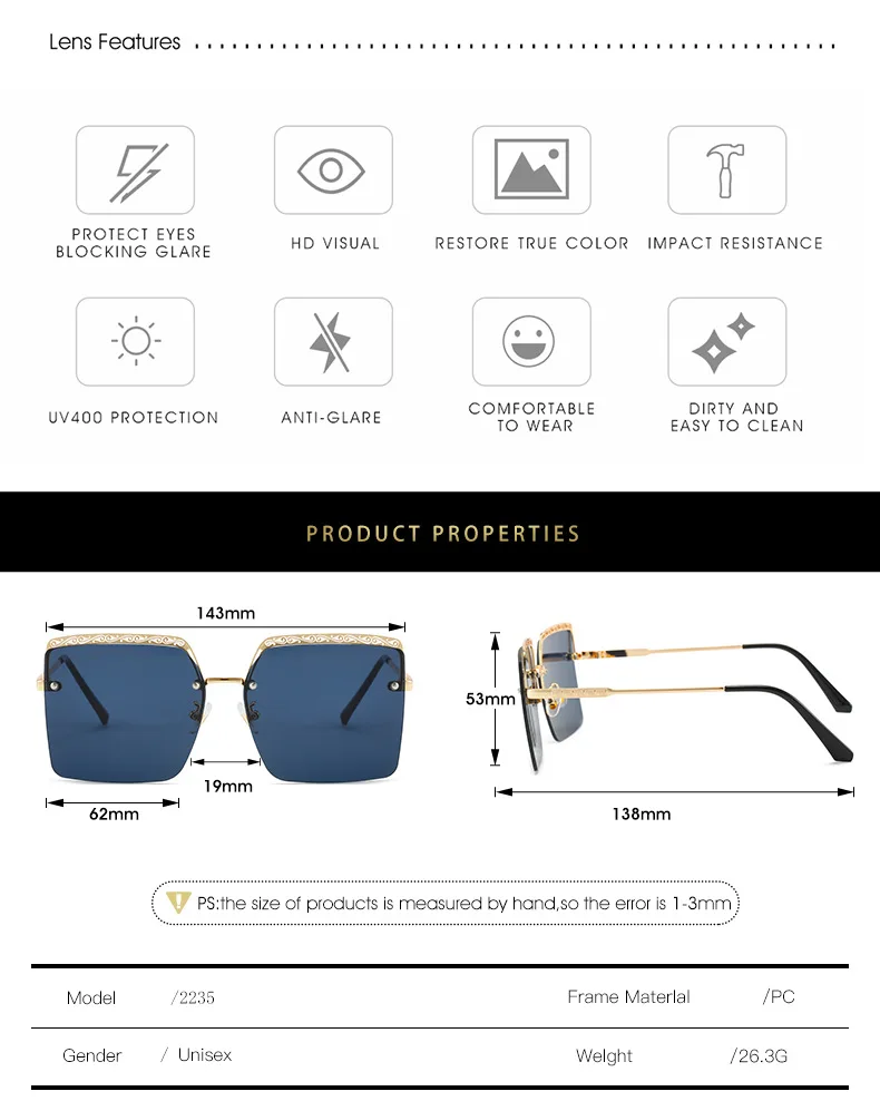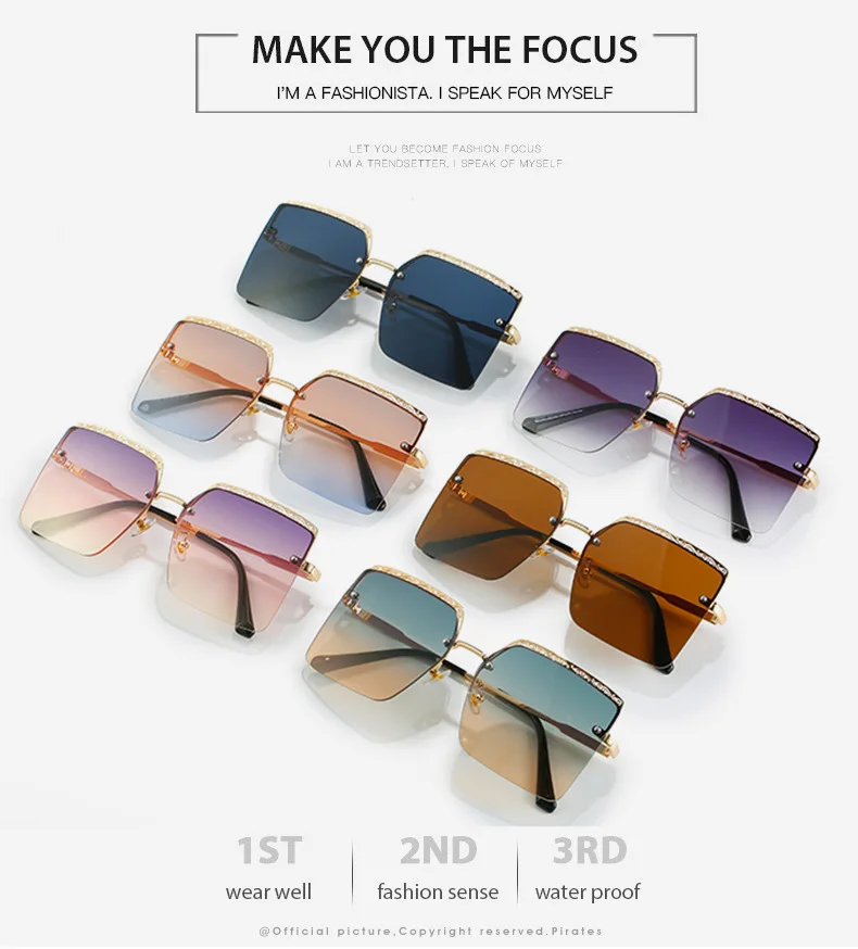 Square Rimless Sunglasses 2023 Women Men Gradient Lenes Sun Glasses Shades Eyewear Female  Brand Eyeglasses UV400