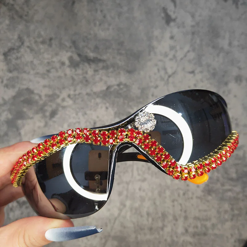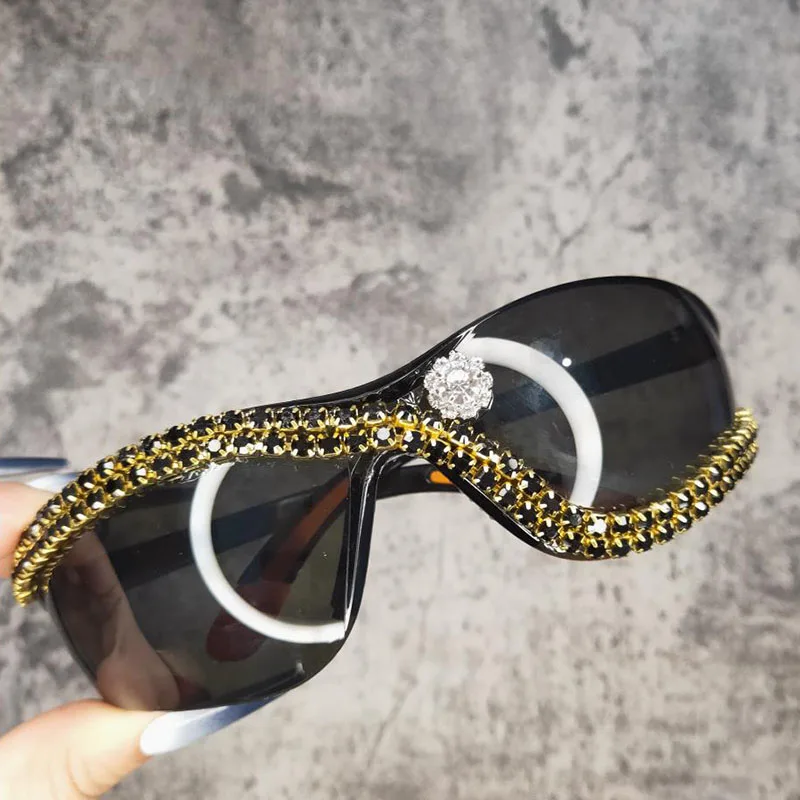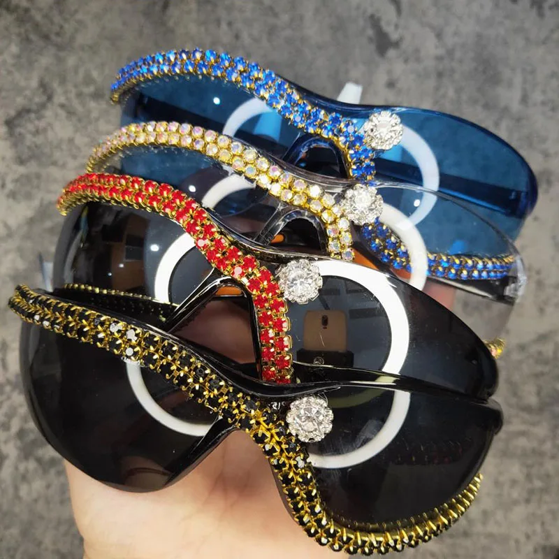 Steampunk Rhinestone Goggle Women Y2K Sunglasses Female Men One-Piece Punk Sun Glasses Shades Eyewear Lady Rideing Eyeglasses