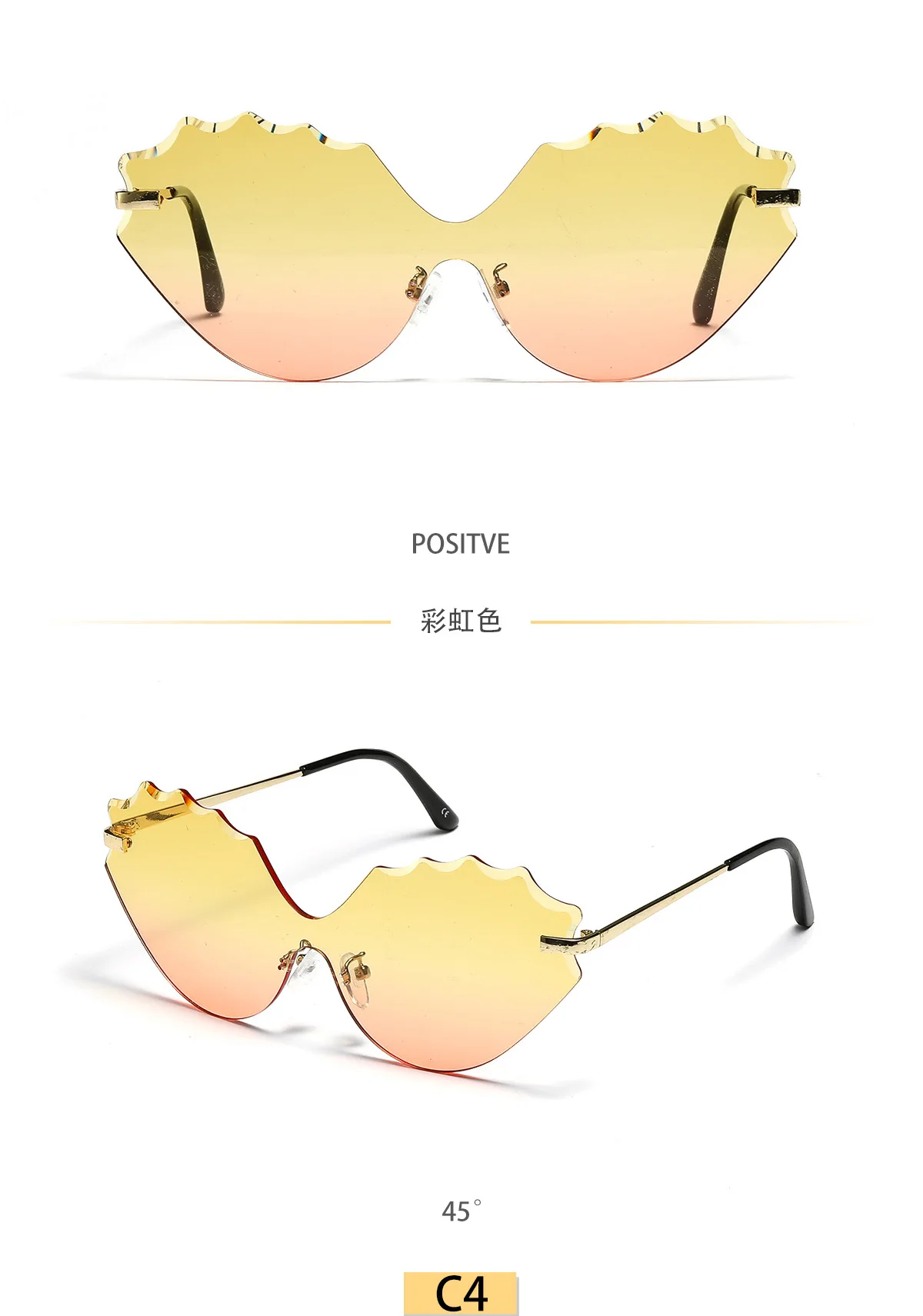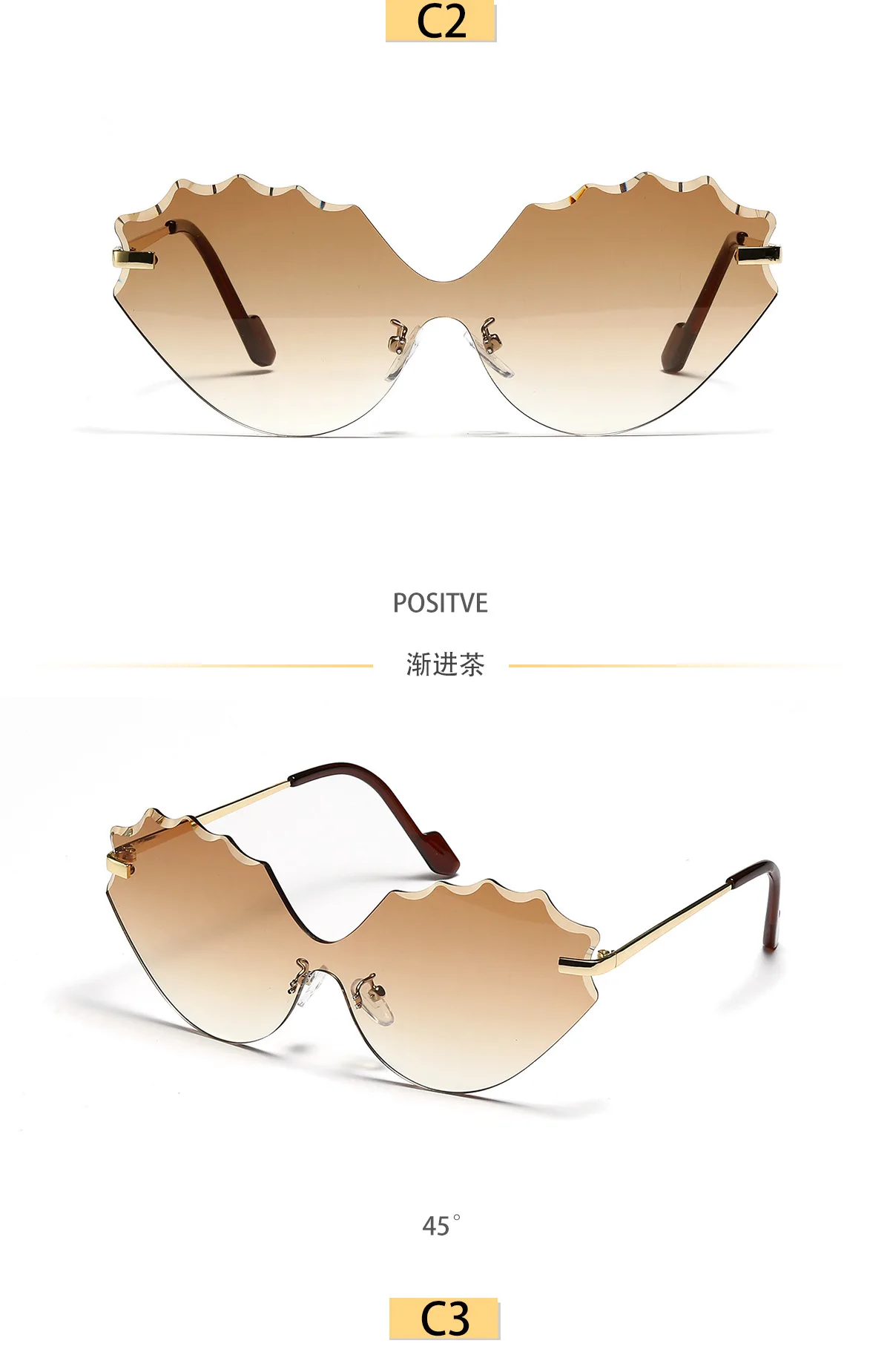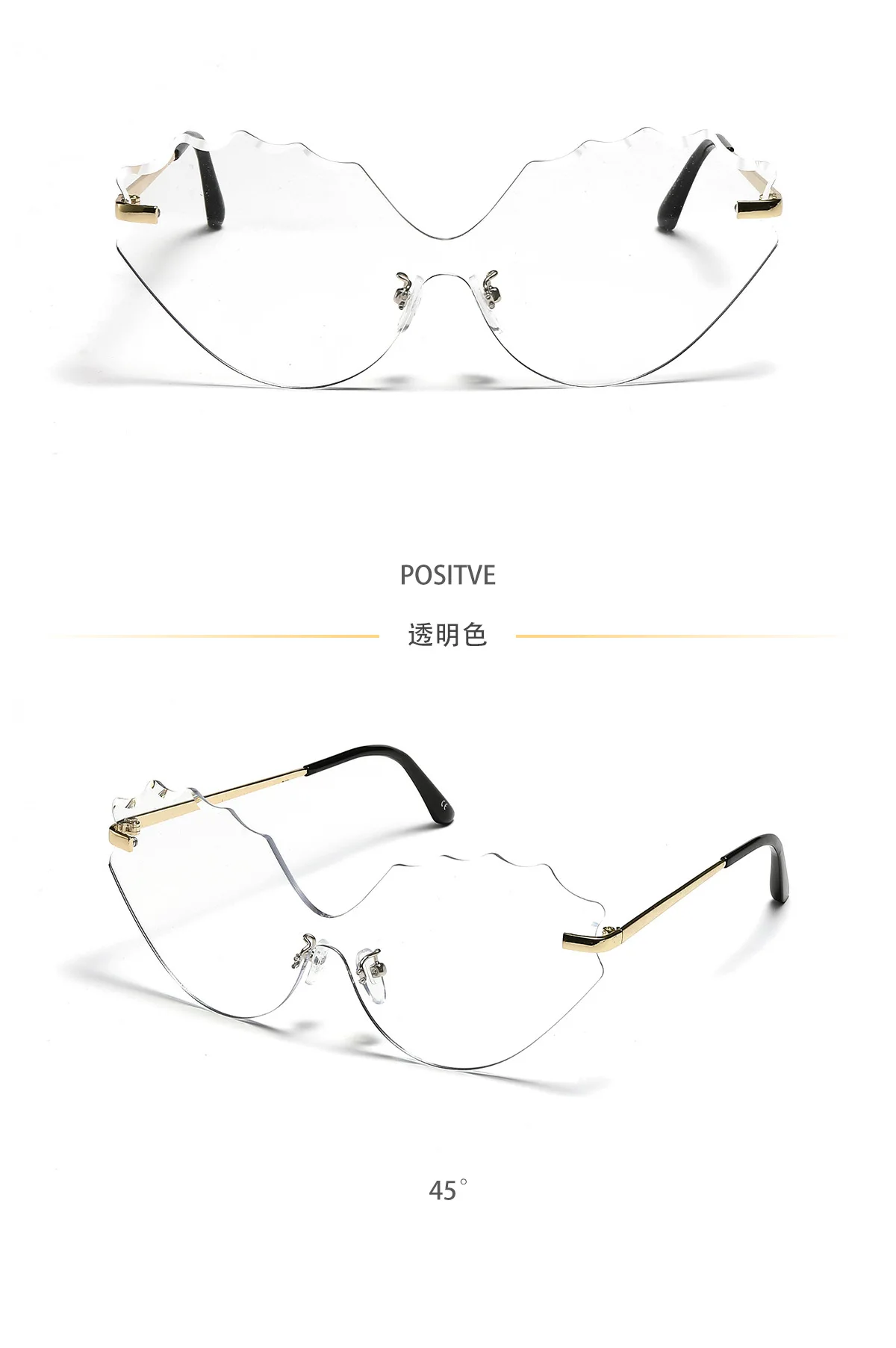 Steampunk Rimless Sunglasses Women Once Piece Cat Eye Sun Glasses Men Gradient Shades UV400 Eyewear Wave Eyeglasses