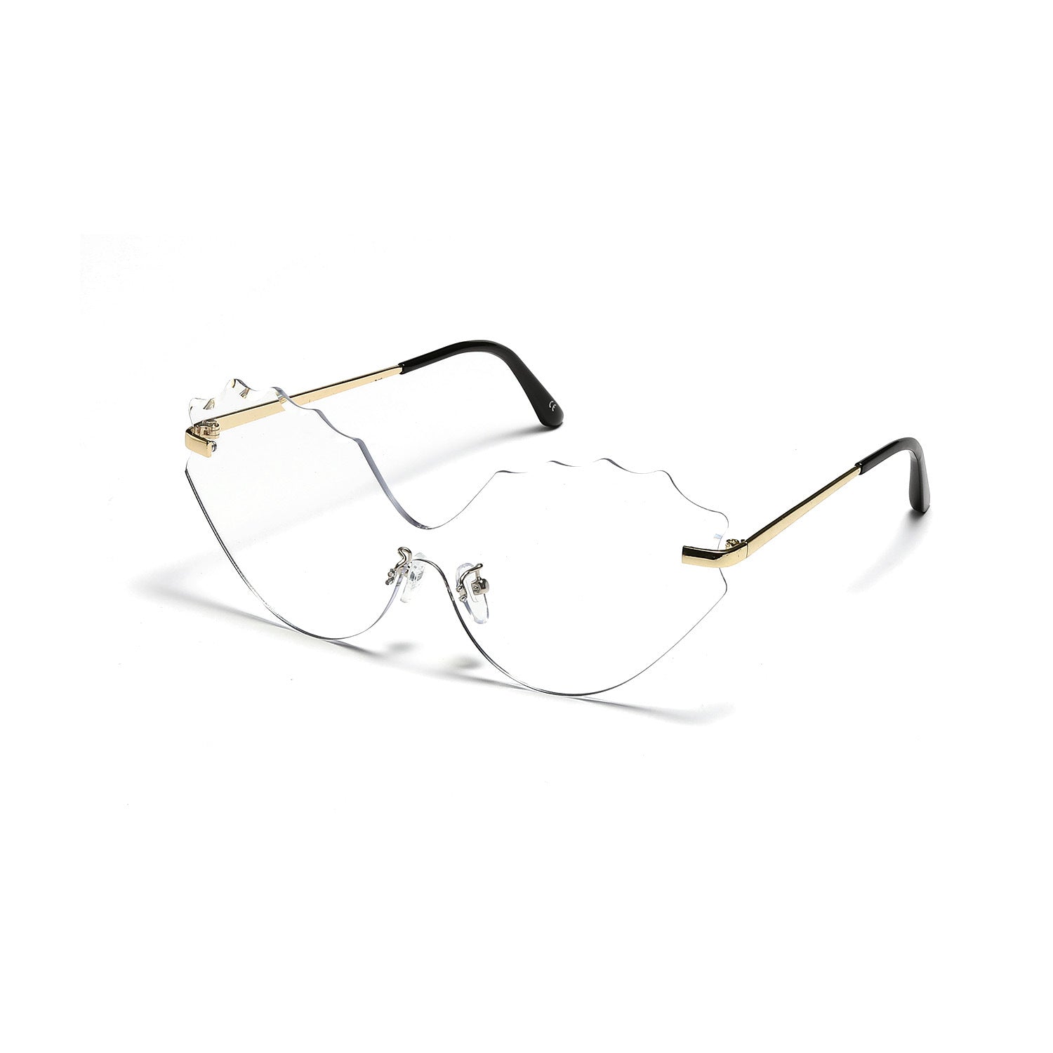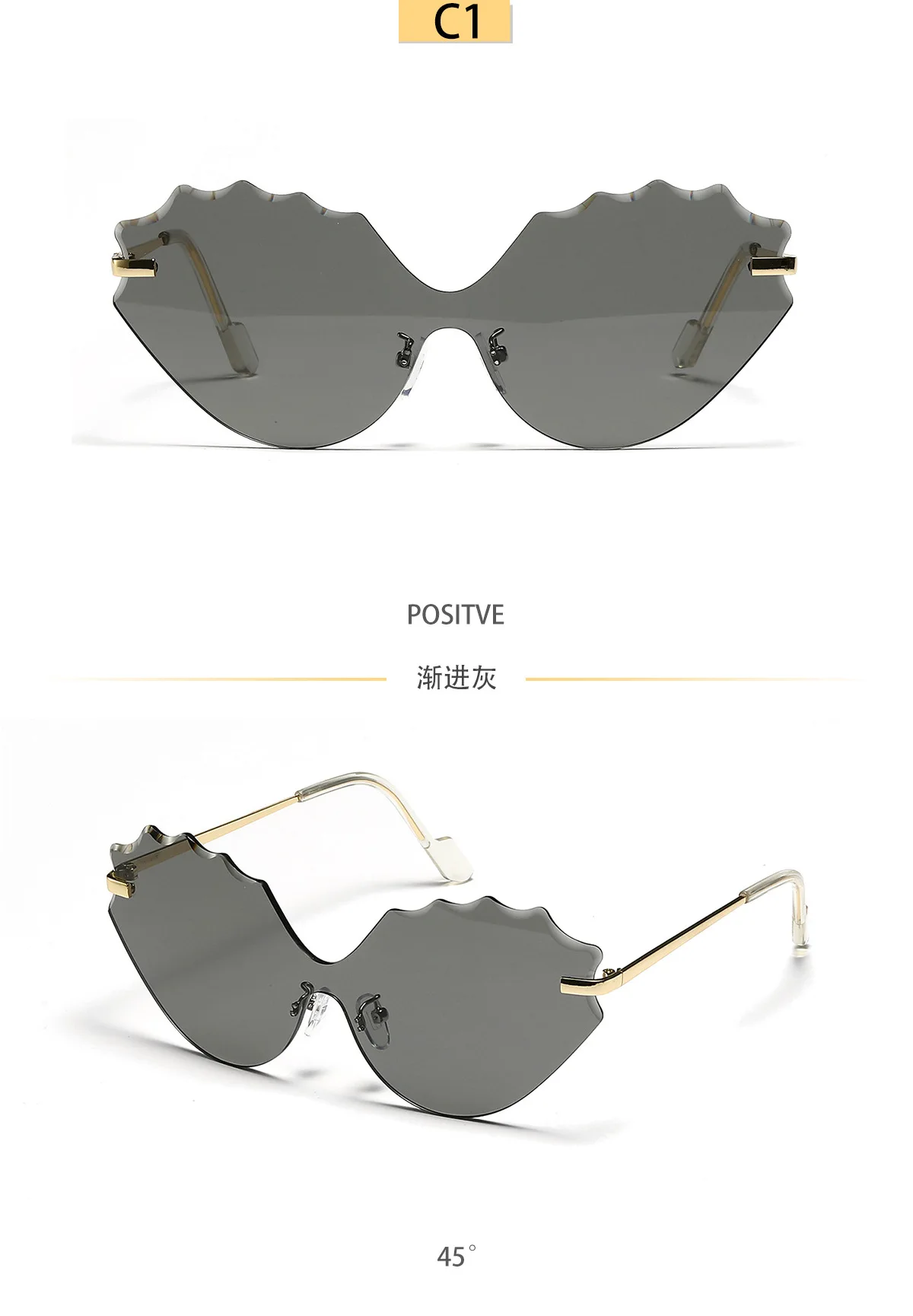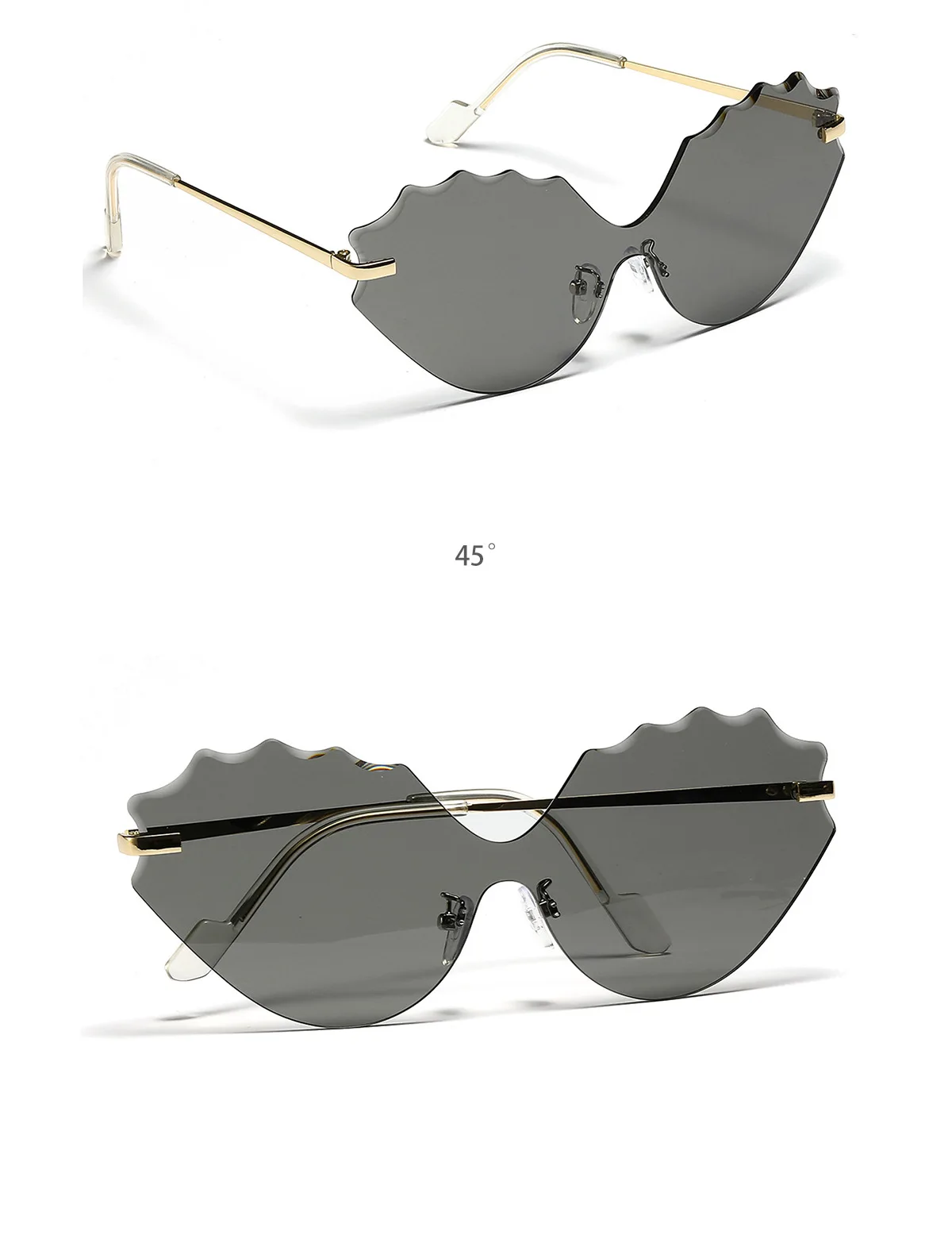 Steampunk Rimless Sunglasses Women Once Piece Cat Eye Sun Glasses Men Gradient Shades UV400 Eyewear Wave Eyeglasses