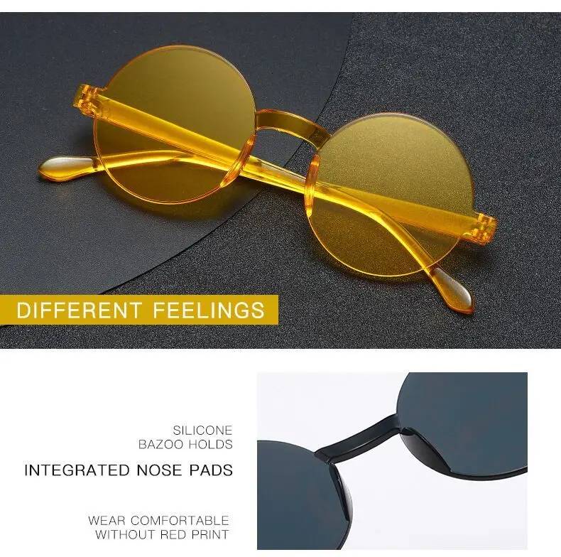 Summer Round Rimless Sunglasses Women Transparent Shades Sun Glasses Female Cool Candy Color UV400 Eyewear Oculos De Sol