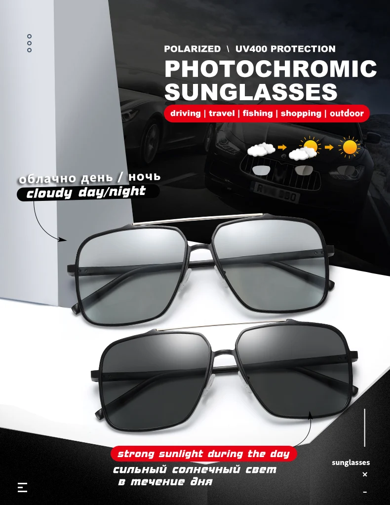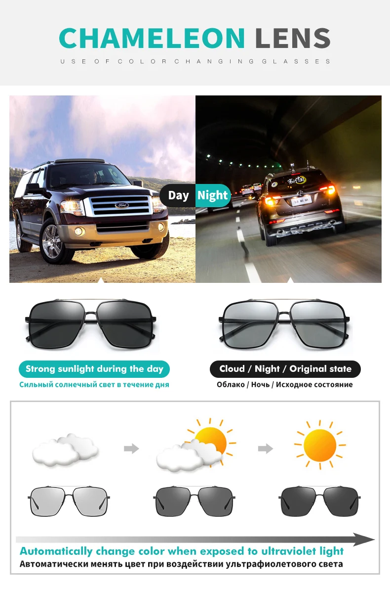 Top Sunglasses For Men Photochromic Glasses Polarized Women Driving Goggle Chameleon Unisex Anti-Glare UV400 gafas de sol hombre