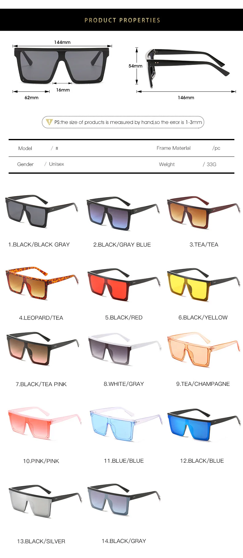 Unisex Retro Classic Square Flat Top Sunglasses Women Brand Designer Trendy One Piece Mirror Sun Glasses Women For Female Shades