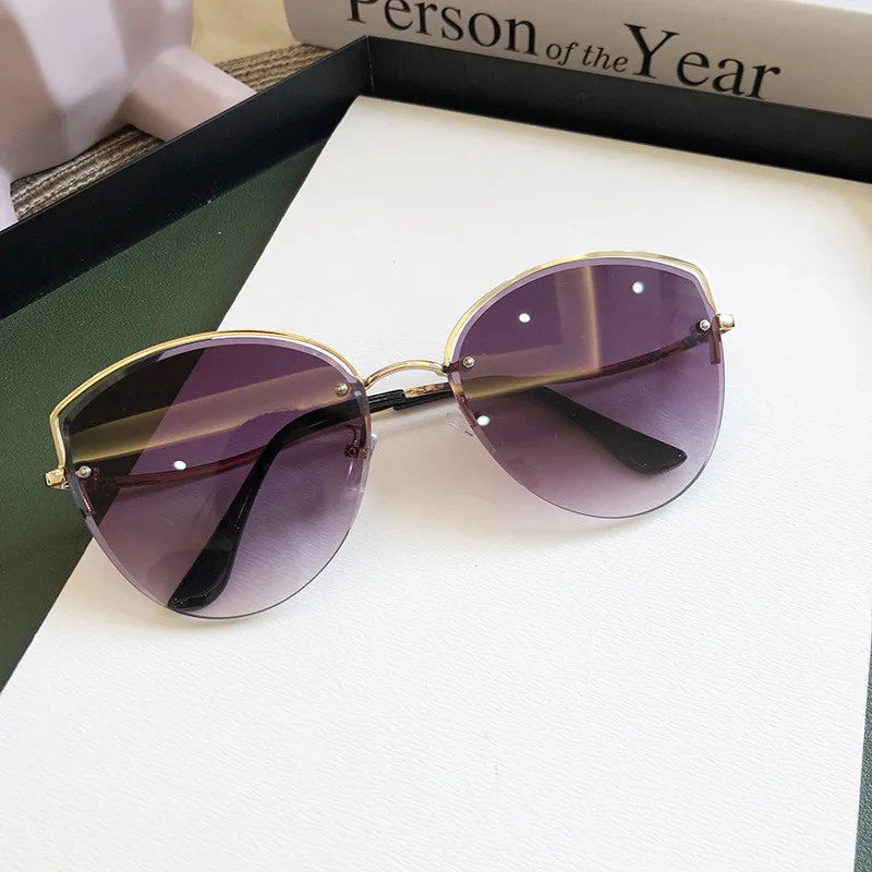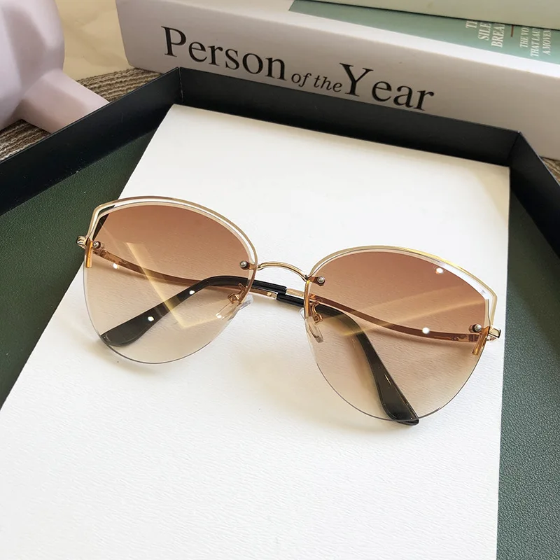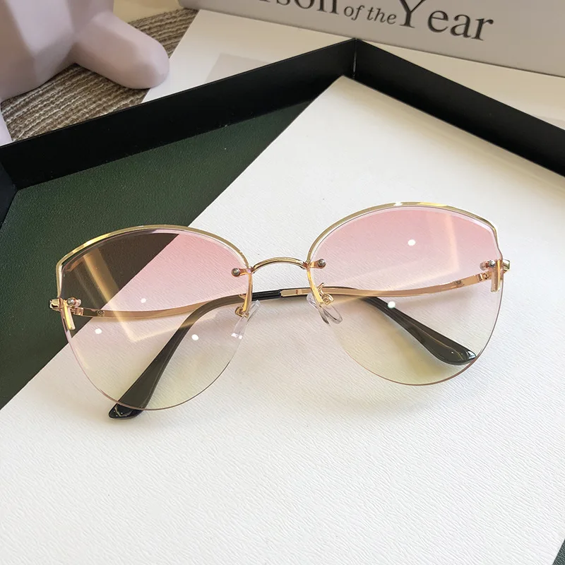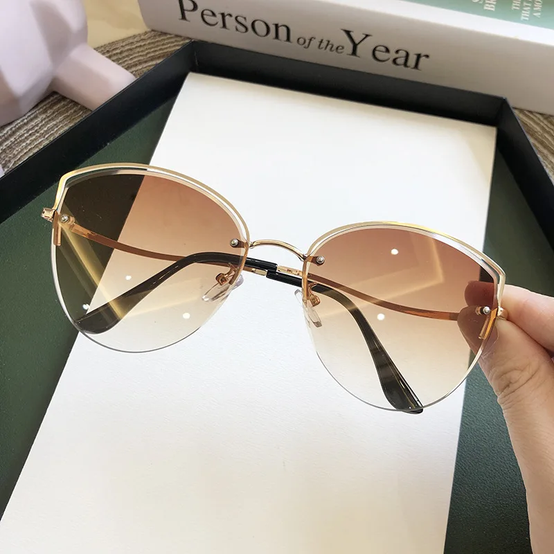 women's Oval Cat Eye Sunglasses Lady Metal Rimless shades  Sunglasses Female Driving Glasses zonnebril dames