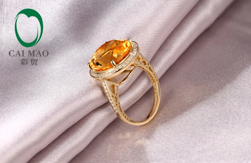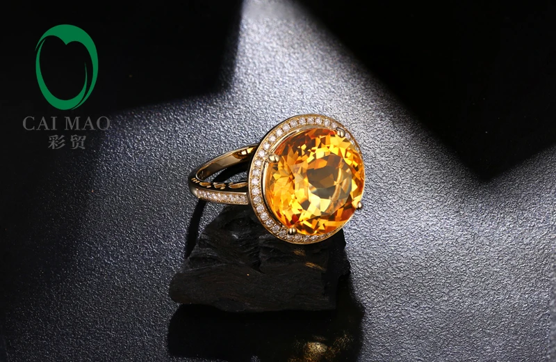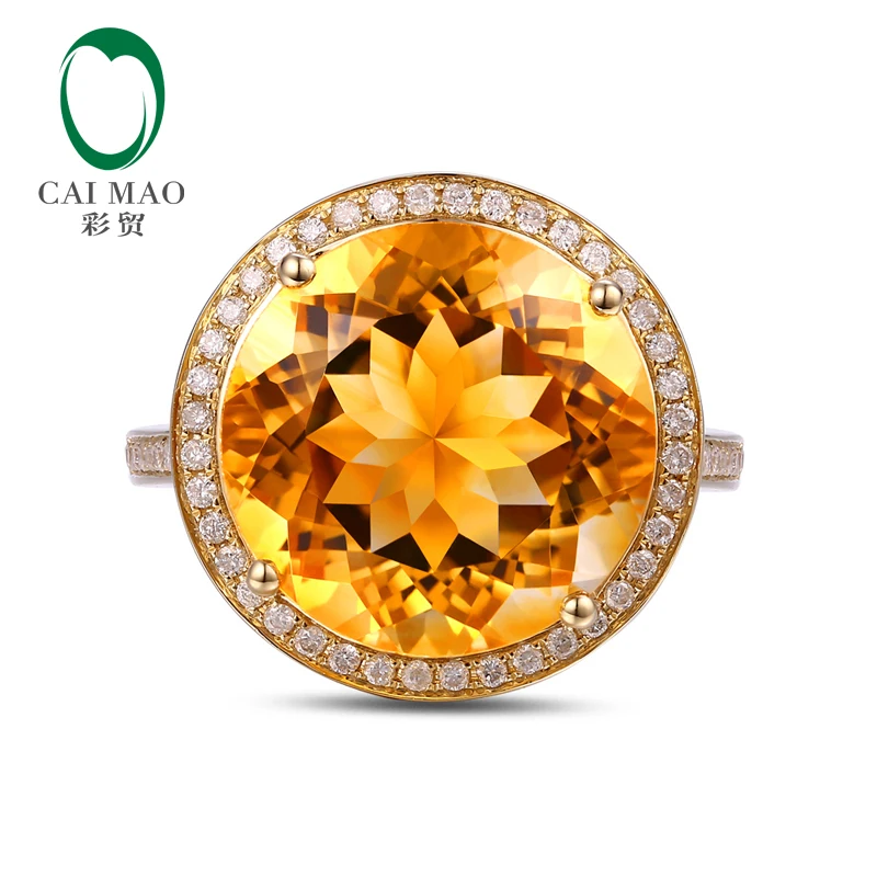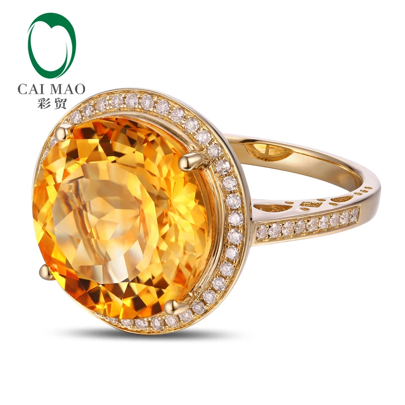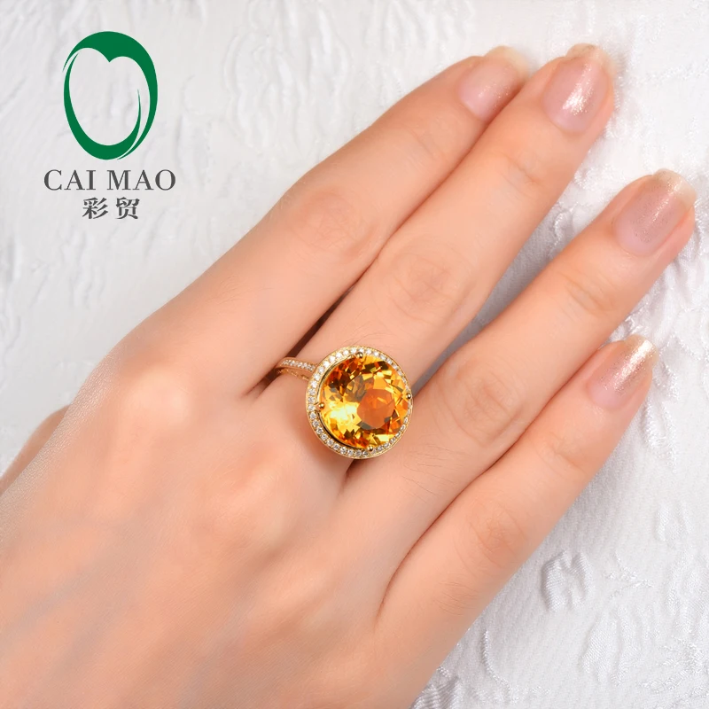 14k Yellow Gold 9.02ct Round Flawless IF Citrine Pave Set Diamond Engagement Ring