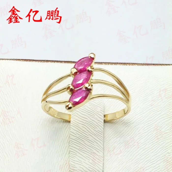 18 k gold inlaid natural ruby ring female 2.5 x5mm