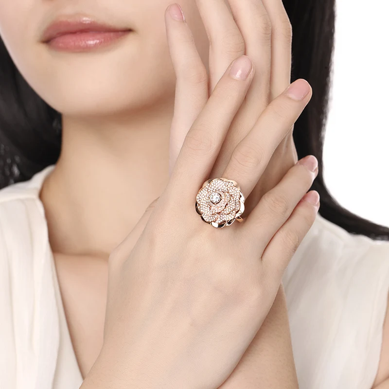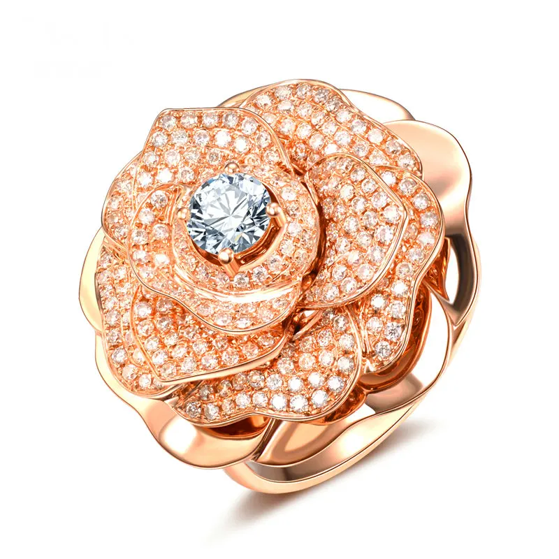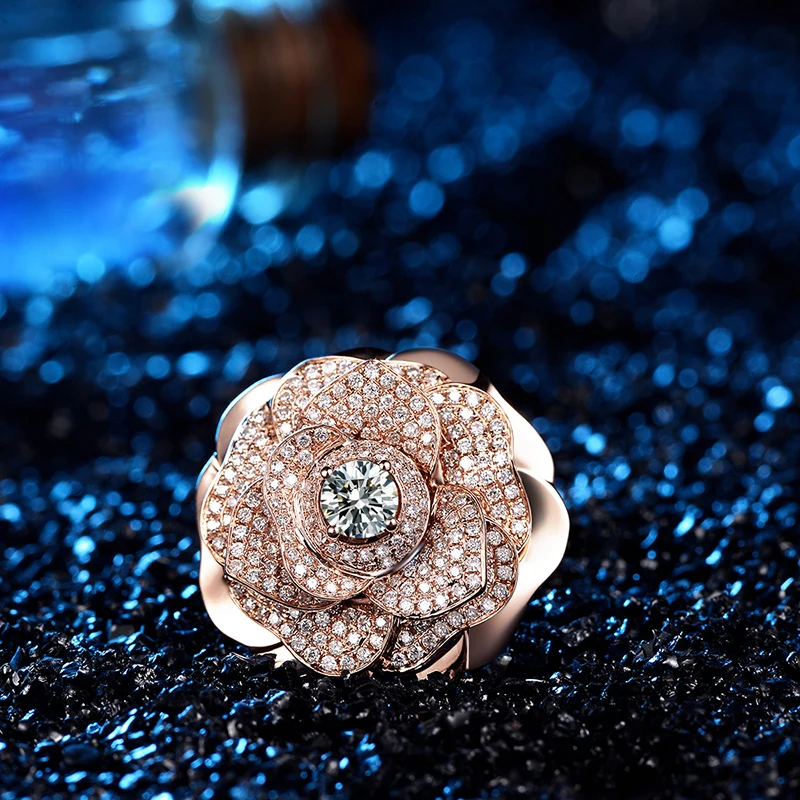 Luxury 18K Rose Gold GIA Diamond Camellia Engagement Ring for Women 0.50+0.924ct Natural GIA Diamond Wedding Ring Handmade