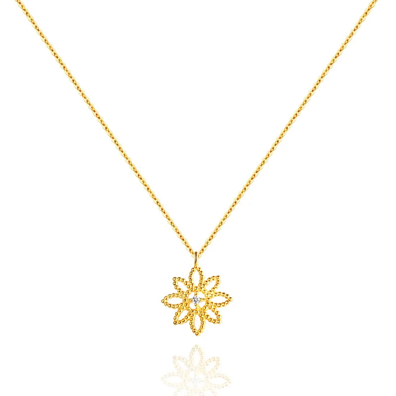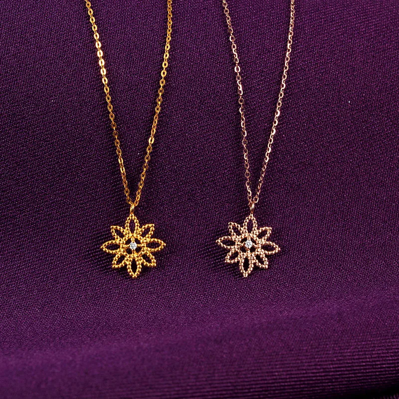 18K Gold Snowflake Diamond Lockstick Chain Rose gold Diamond Necklace White Gold Necklace Pendant genuine