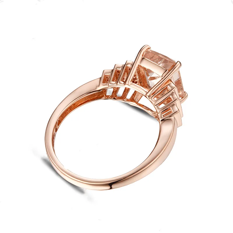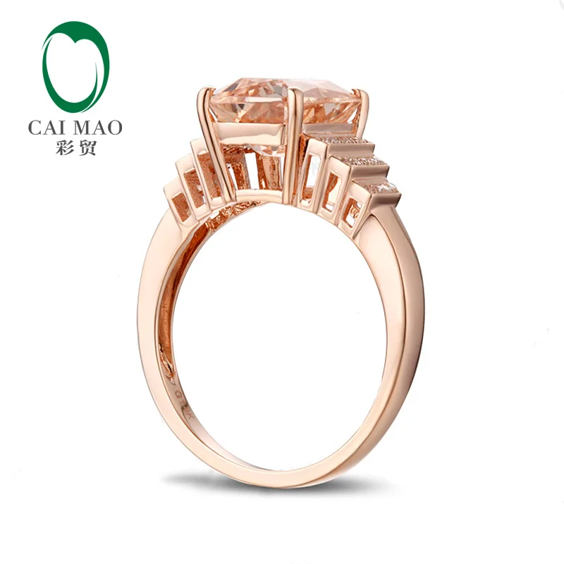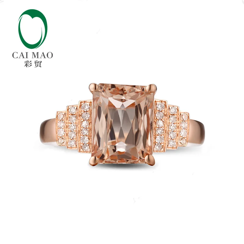 2.42ct VS 7x9mm Emerald Morganite Pave Diamond Real 14k Rose Gold Engagement Ring