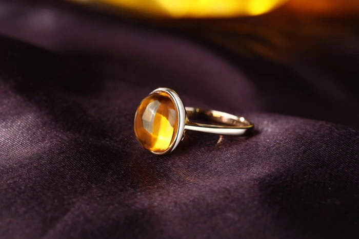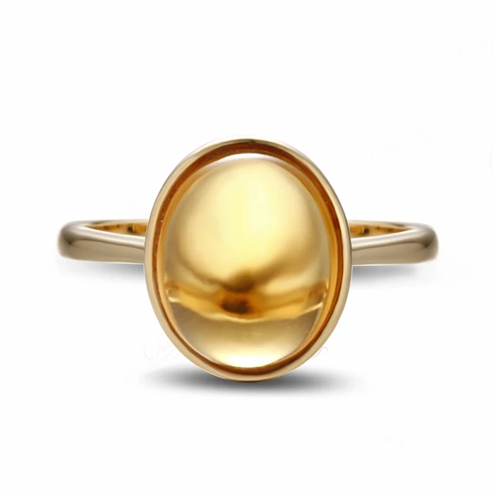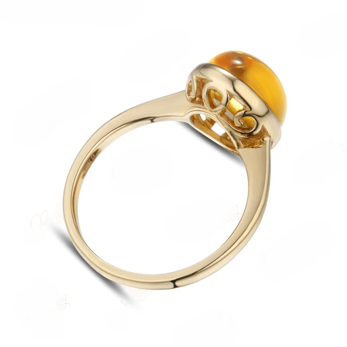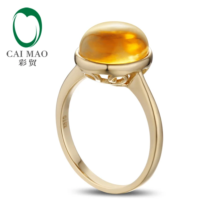 4.92ct Cabochon Cut Bezel Set Yellow Citrine Solitaire 14K Yellow Gold Ring