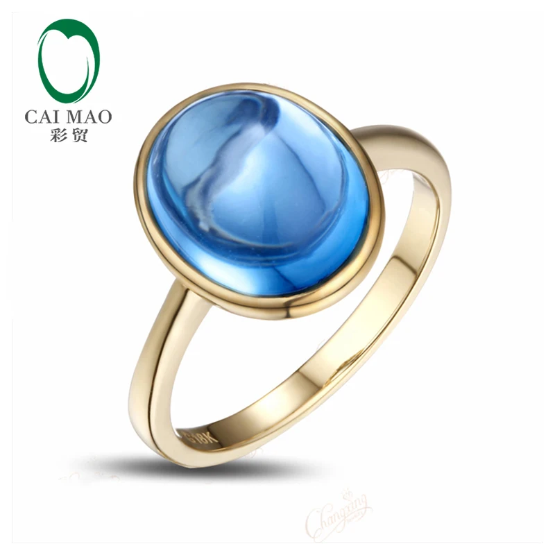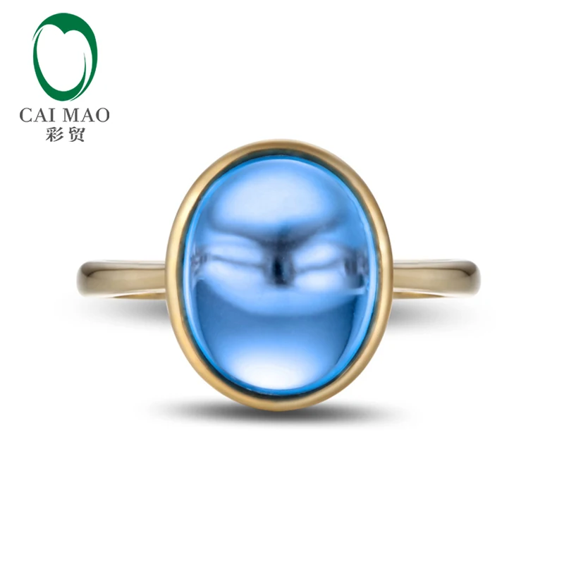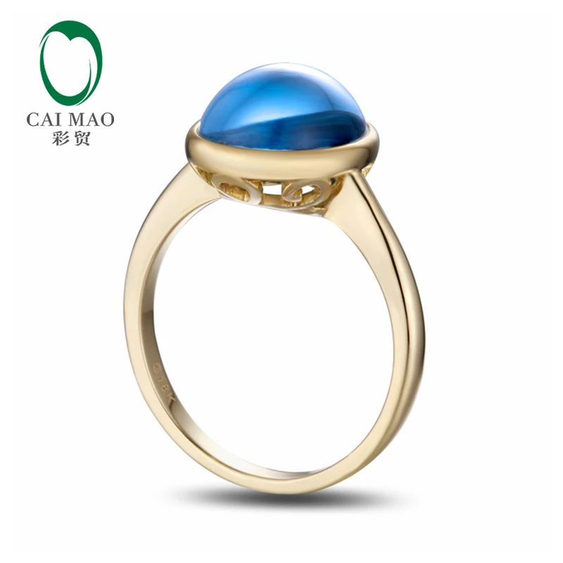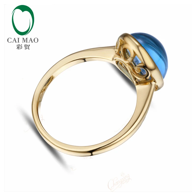 5.02CT Cabochon Cut Bezel Set Blue Topaz Solitaire 14K Yellow Gold Ring