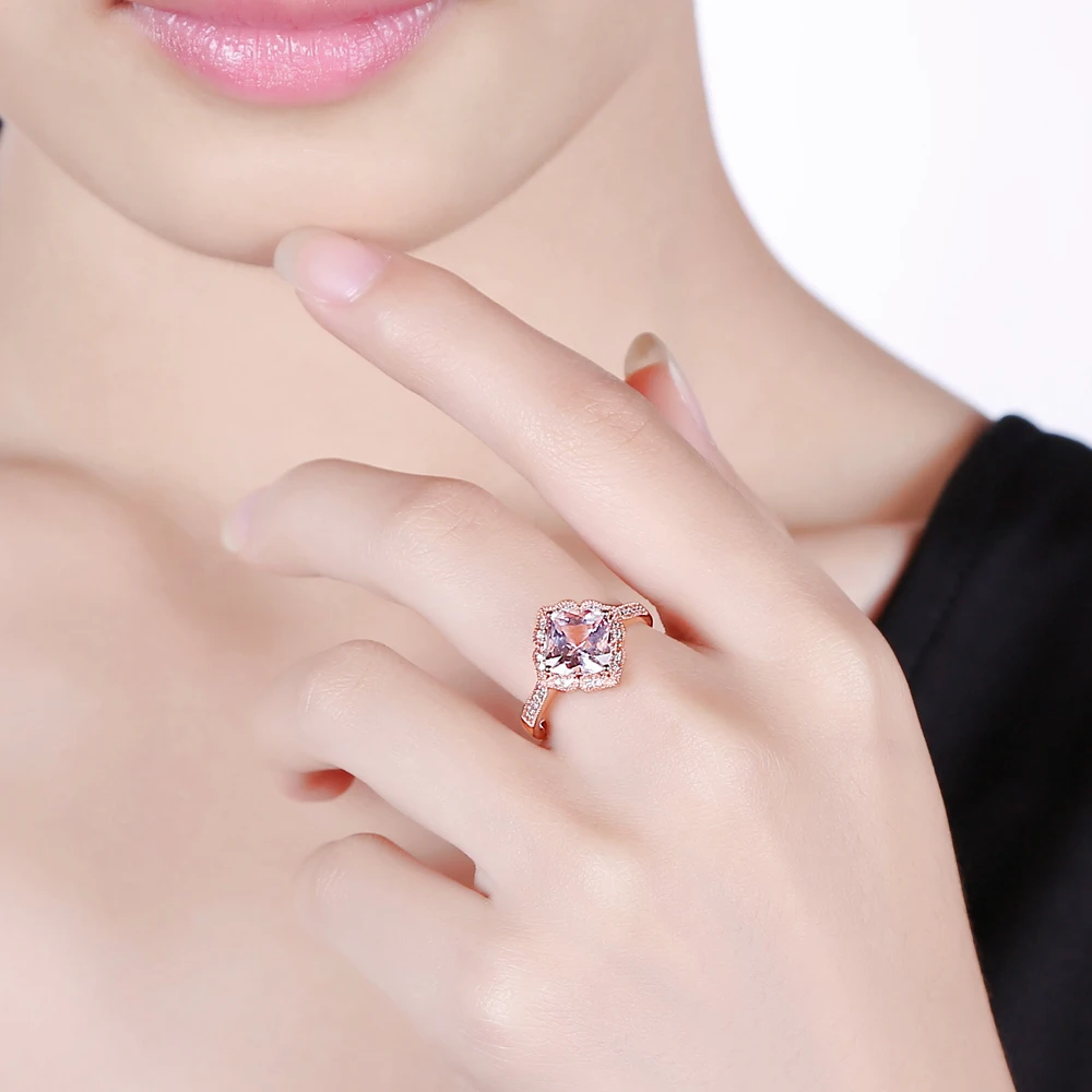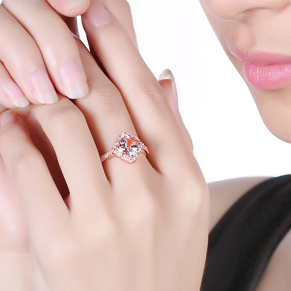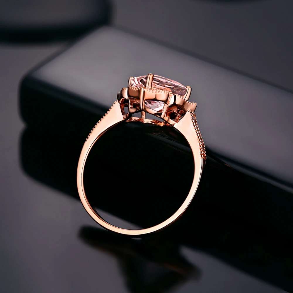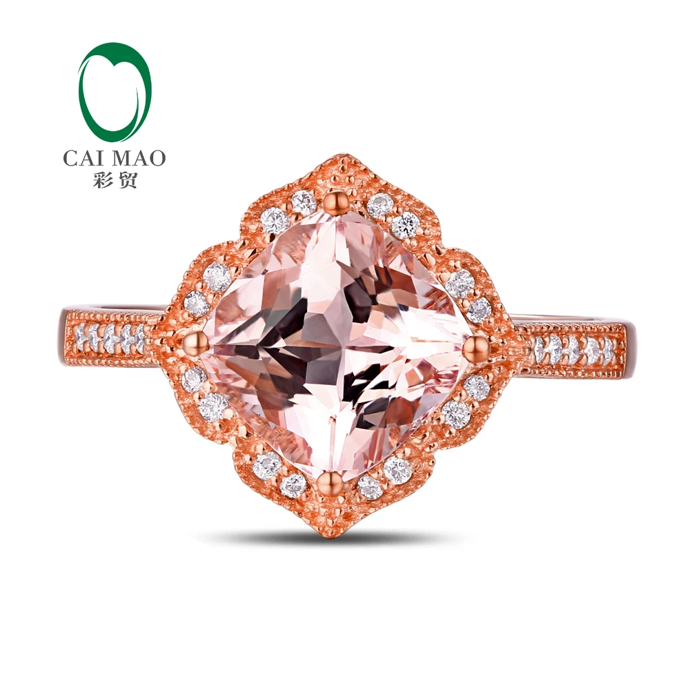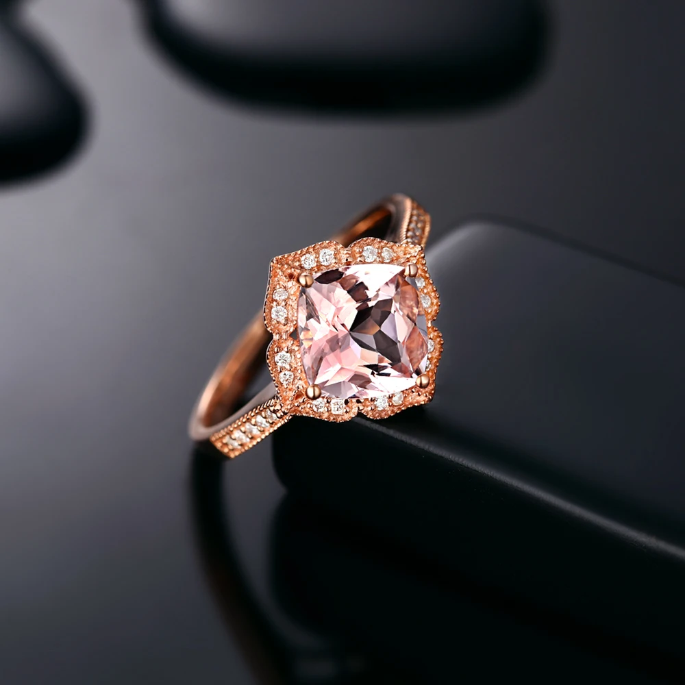 9K Rose Gold 2.08ct Natural Morganite & 0.13ct Diamonds Mligrain Engagement Classic Ring