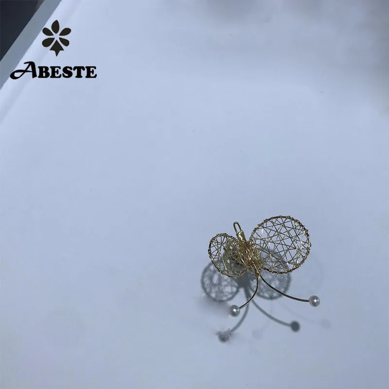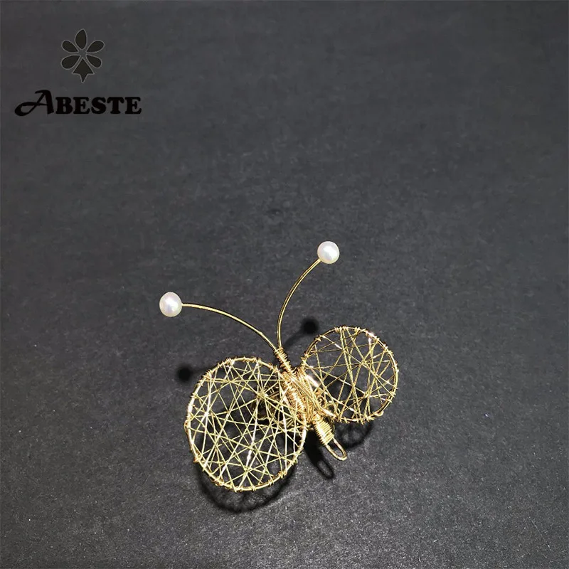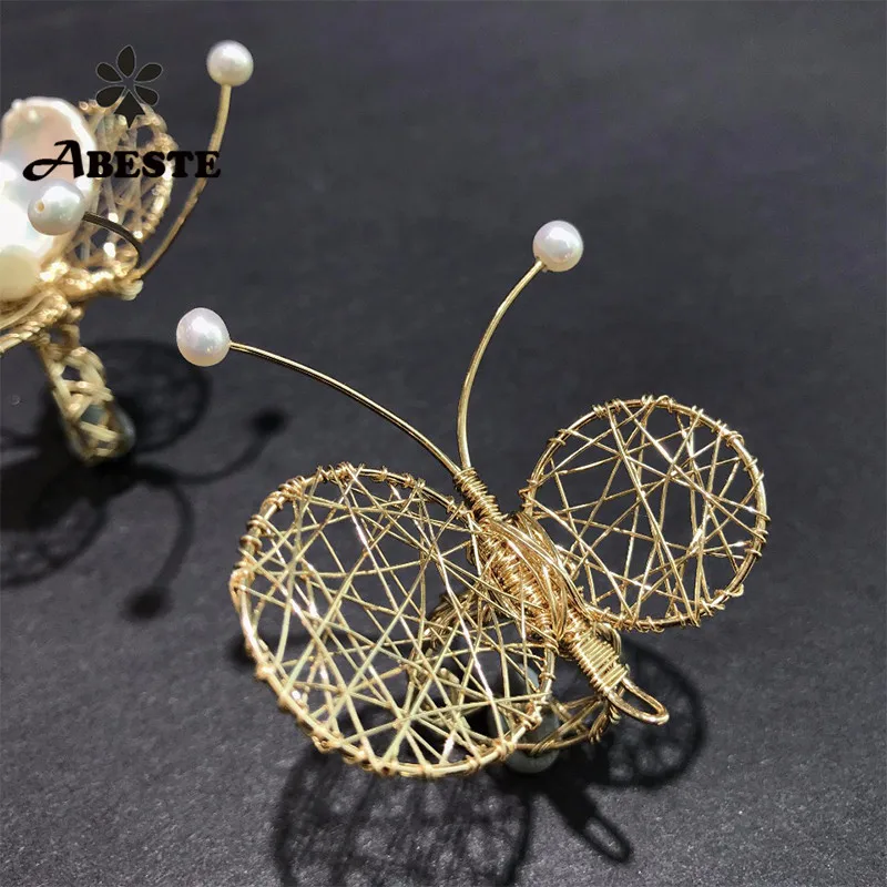 ANI 14K Roll Gold Handmade Women Ring White Pearl bijoux perlas naturales Ring Butterfly Shape anillos de oro Custom
