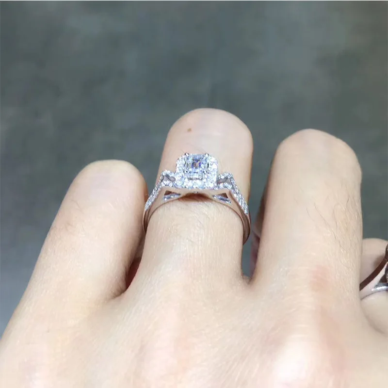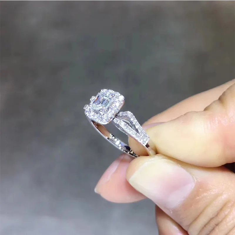 ANI 18K White Gold (AU750) Wedding Ring 0.725 CT GIA Certified G/VS2 Princess Cut Natural Diamond Women Halo Engagement Ring