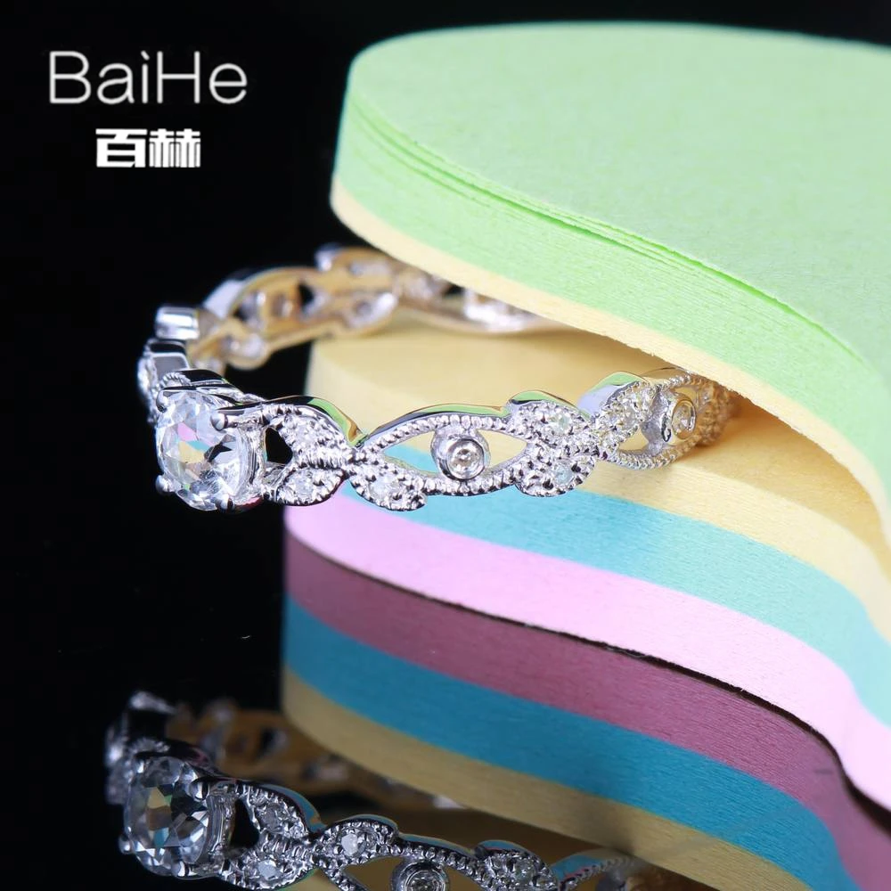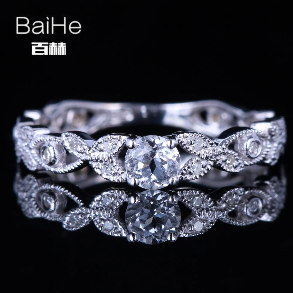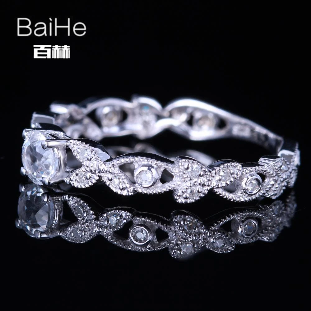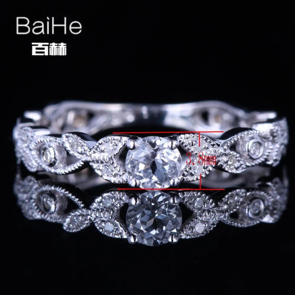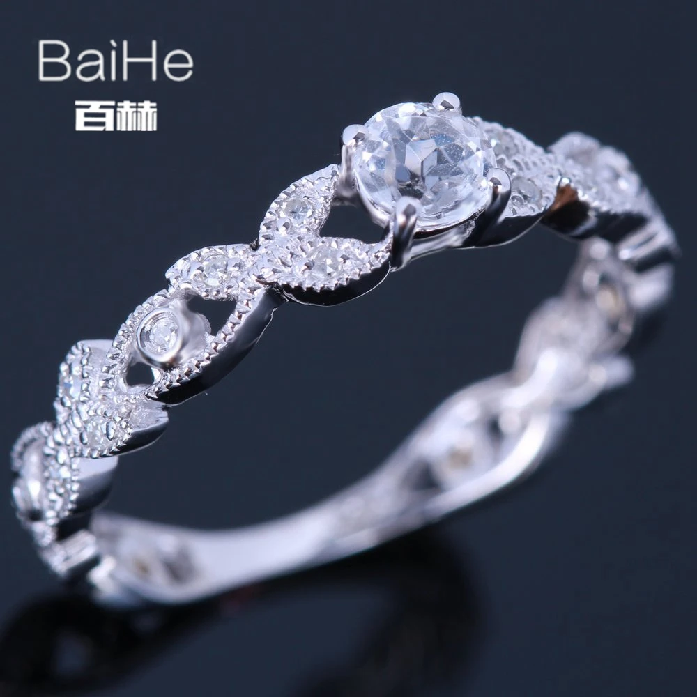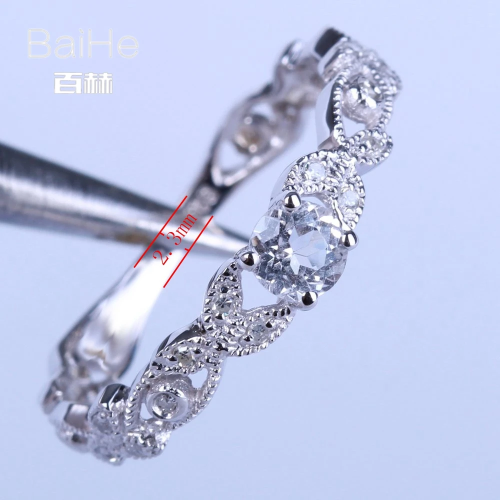 BAIHE Solid 14K White Gold(AU585) 0.22CT Certified Genuine White Topaz Round Flawless Wedding Women Trendy Fine Jewelry Ring
