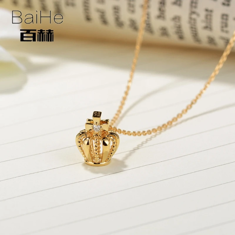 BAIHE Solid 14K Yellow Gold 0.03ct Certified Genuine Natural Diamond Wedding Women Trendy Jewelry Elegant unique gift Necklaces