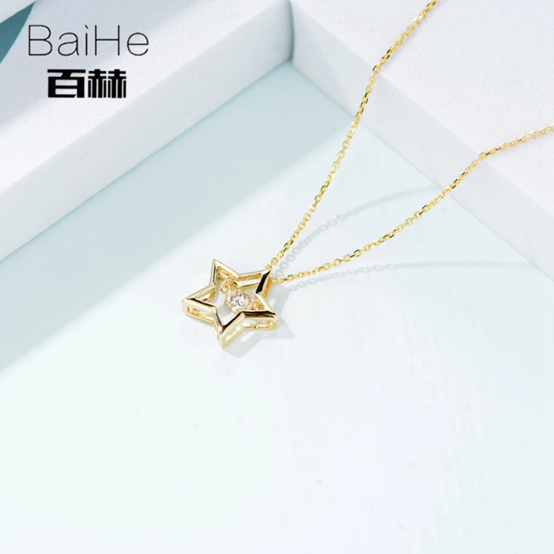 BAIHE Solid 14K Yellow Gold 0.08ct Certified H/SI 100% Genuine Natural Dancing Diamond Women Trendy Fine Jewelry Gift Necklaces