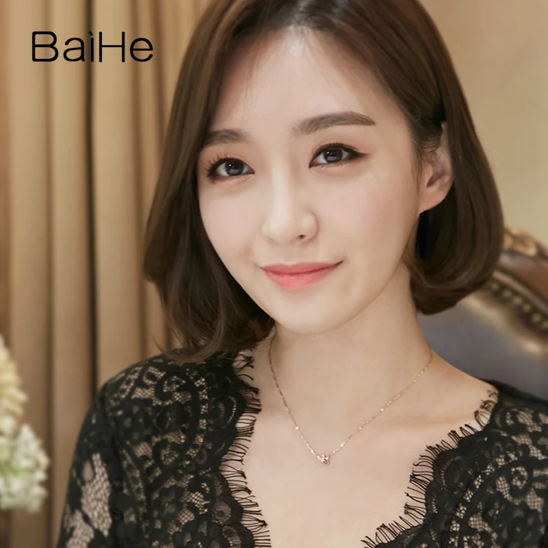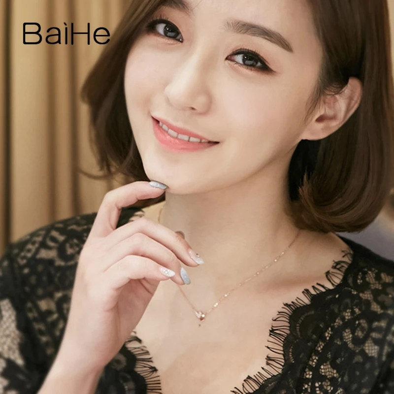 BAIHE Solid 18K Rose Gold 0.09CT Certified Round 100% Genuine Natural Diamonds Women Engagement Jewelry Vintage Gift Necklaces
