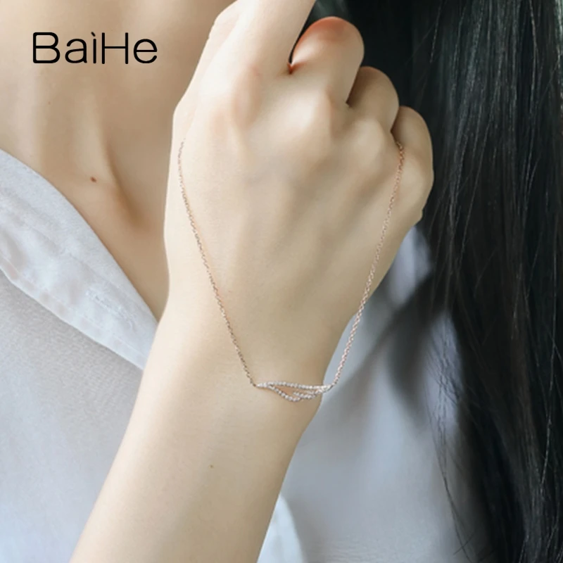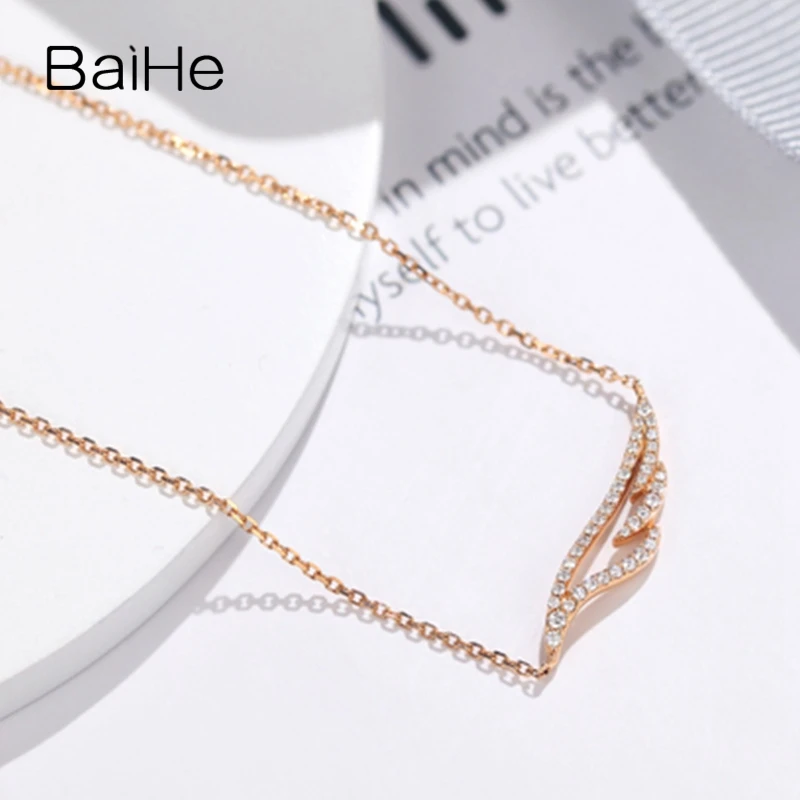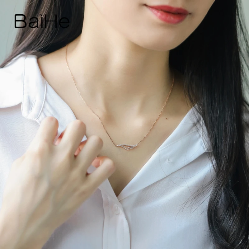 BAIHE Solid 18K Rose Gold 0.15ct Certified Round F-G/SI 100% Genuine Natural Diamonds Women Engagement Fine Jewelry Necklaces
