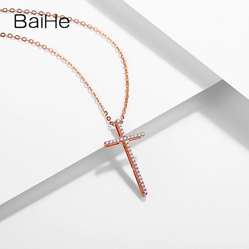 BAIHE Solid 18K Rose Gold 0.18ct Certified H/SI 100% Genuine Natural Diamonds Engagement Women Trendy Jewelry Elegant Necklaces