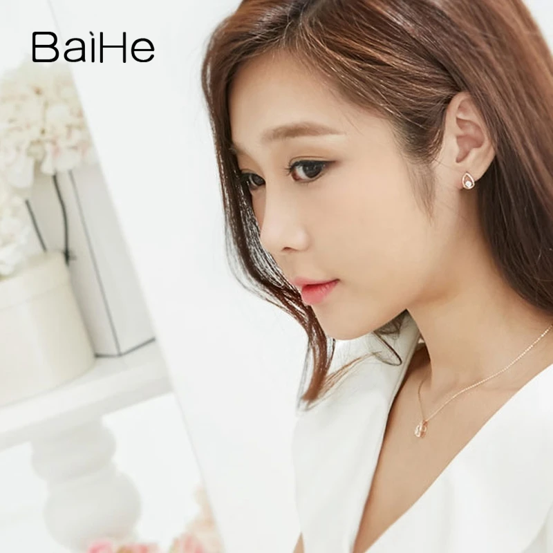 BAIHE Solid 18K Rose Gold 0.20ct Certified Round cut 100% Genuine Natural Diamonds Women Engagement Fine Jewelry Gift Necklaces