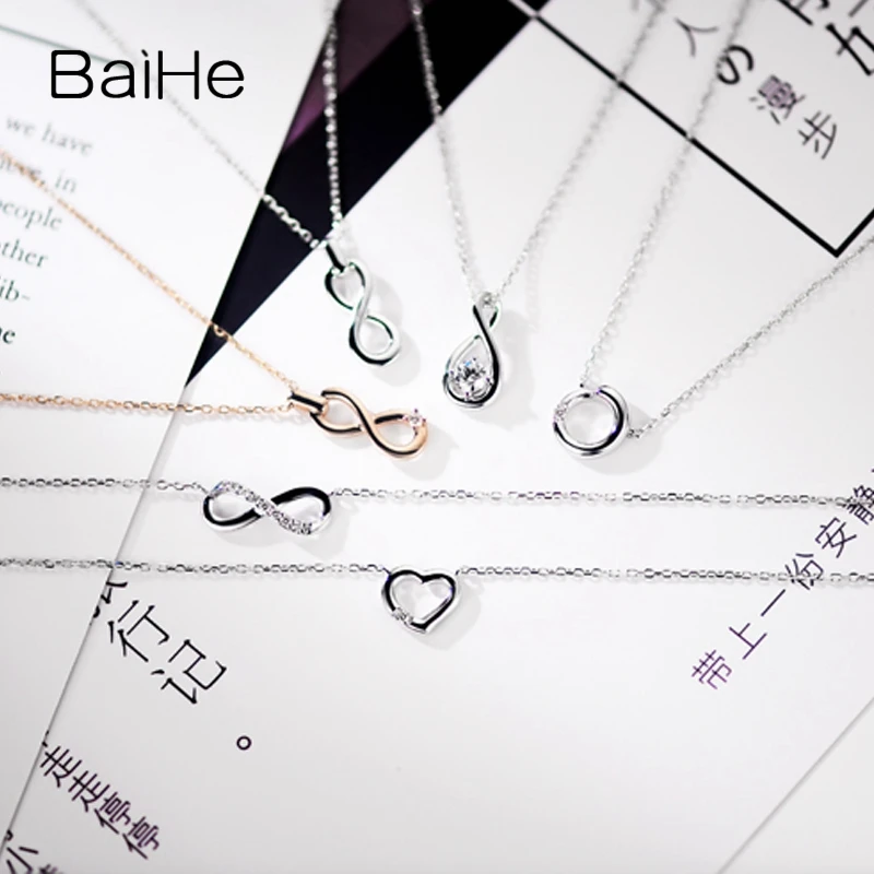 BAIHE Solid 18K White Gold 0.015ct Certified Round cut 100% Genuine Natural Diamond Women Engagement Fine Jewelry Gift Necklaces