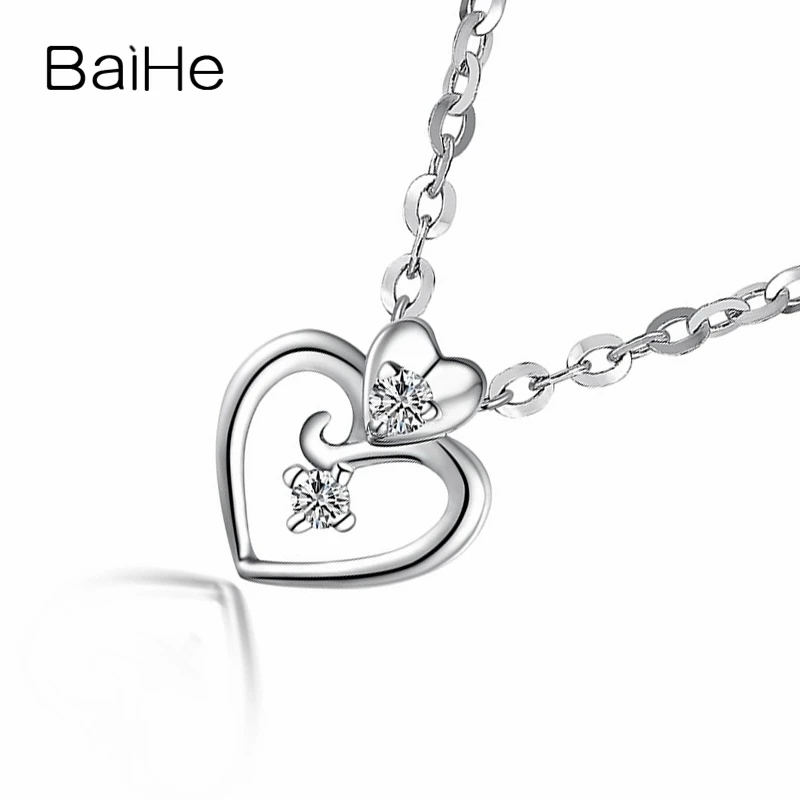 BAIHE Solid 18K White Gold 0.03ct Certified Round cut 100% Genuine Natural Diamonds Women Engagement Fine Jewelry Gift Necklaces