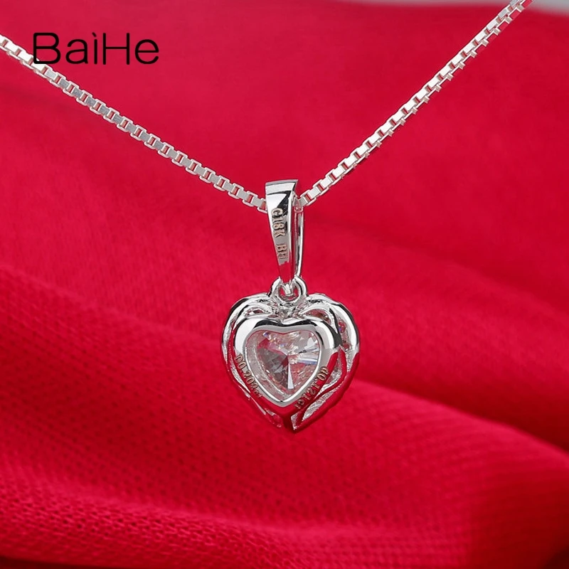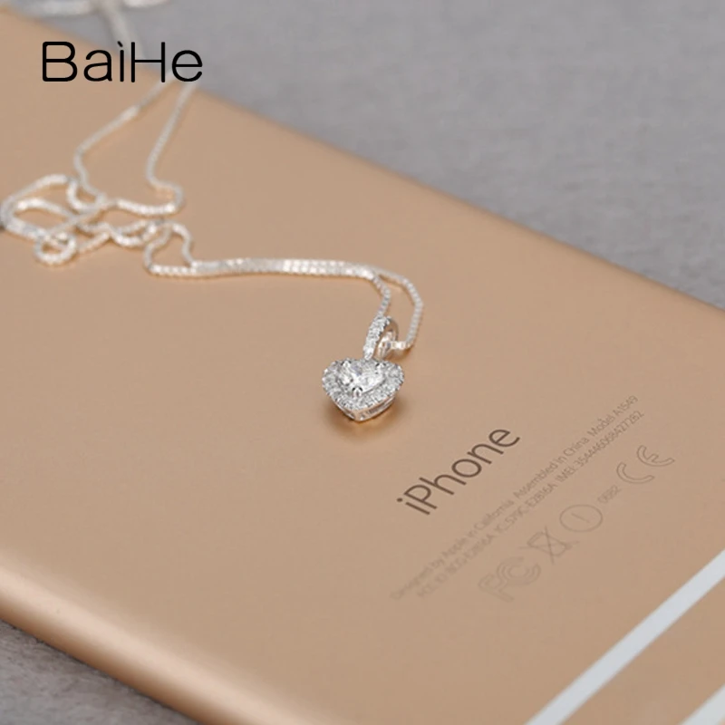 BAIHE Solid 18K White Gold 0.19ct Certified Heart Single Cut 100% Genuine Natural Diamond Wedding Trendy Fine Jewelry Necklaces