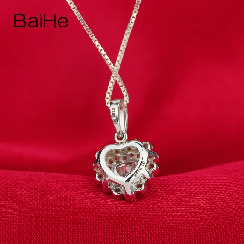 BAIHE Solid 18K White Gold 0.20ct Certified Heart Cut 100% Genuine Natural Diamond Party Trendy Fine Jewelry Gift Necklaces