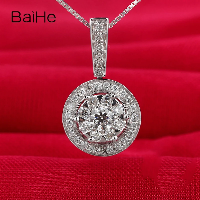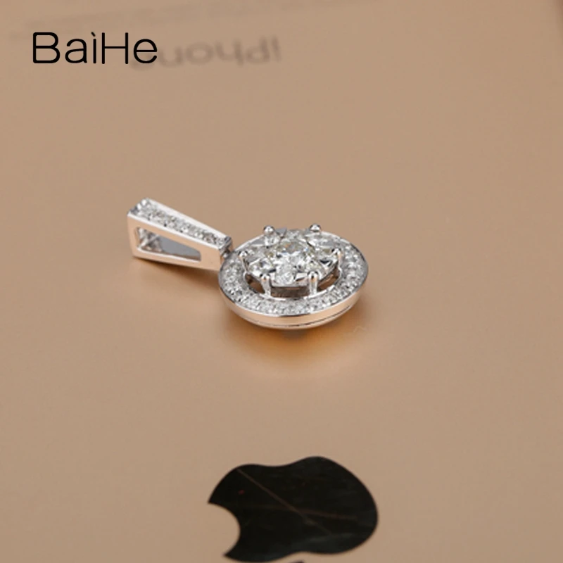 BAIHE Solid 18K White Gold 0.23ct Certified Round Single Cut 100% Genuine Natural Diamond Wedding Trendy Fine Jewelry Necklaces