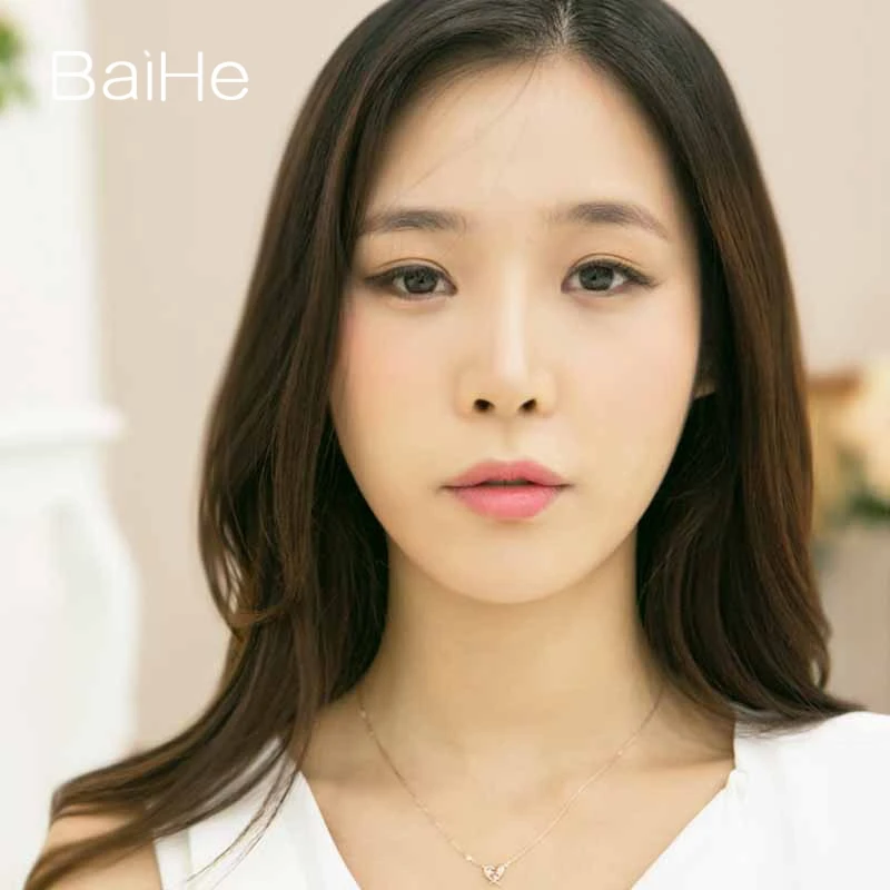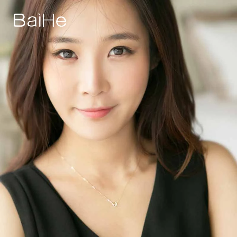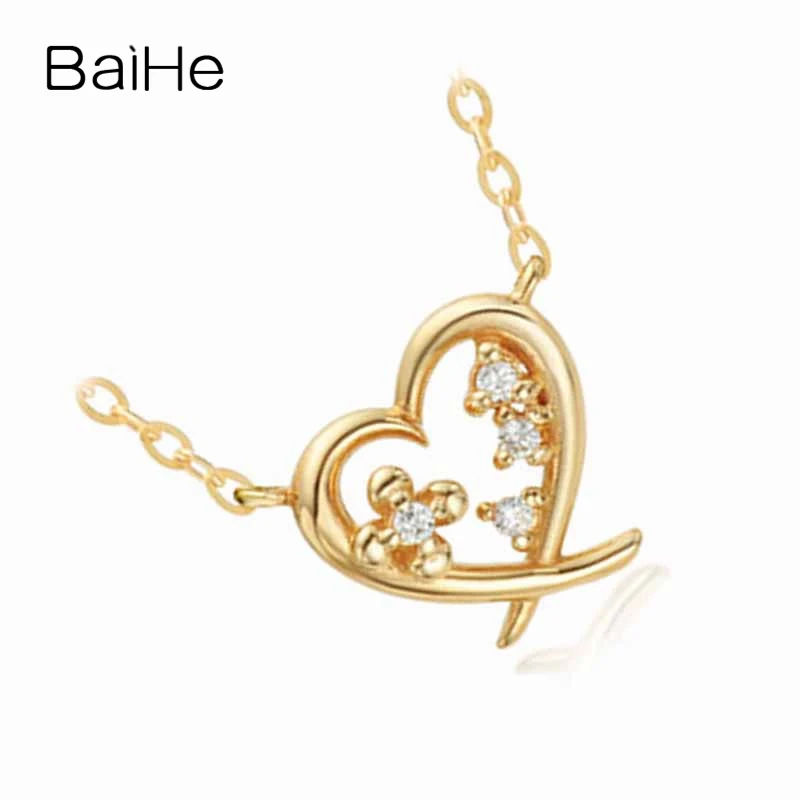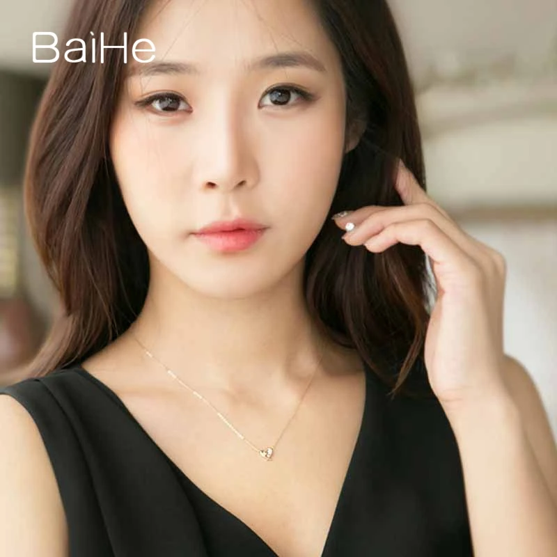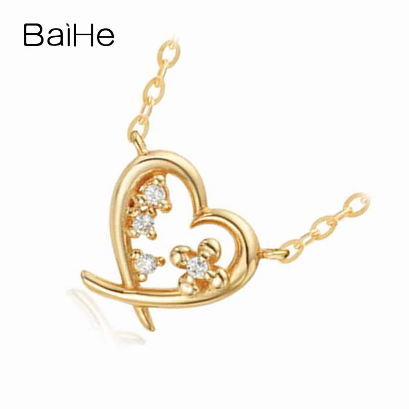BAIHE Solid 18K Yellow Gold 0.02CT Certified Genuine Natural Diamonds Women Engagement Fine Jewelry Elegant Trendy Necklaces