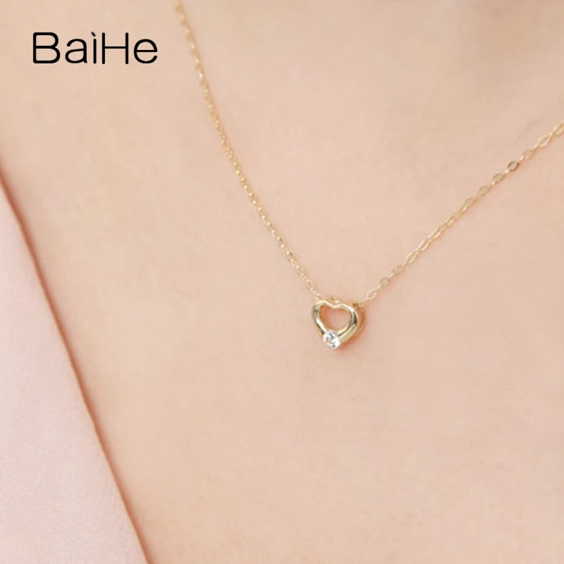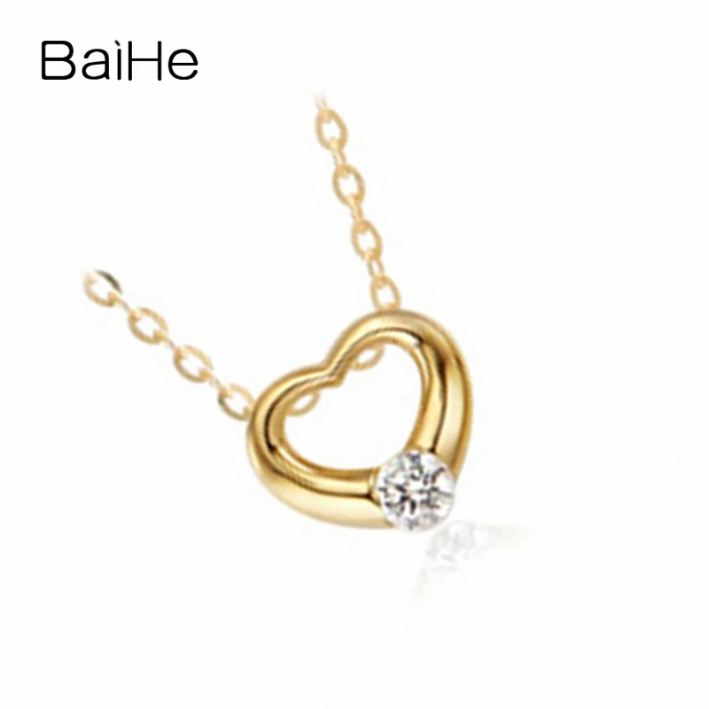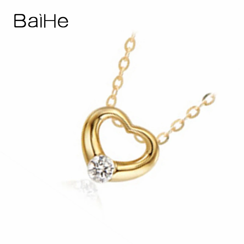 BAIHE Solid 18K Yellow Gold 0.06ct Certified 100% Genuine Natural Diamond Women Engagement Trendy Fine Jewelry Elegant Necklaces