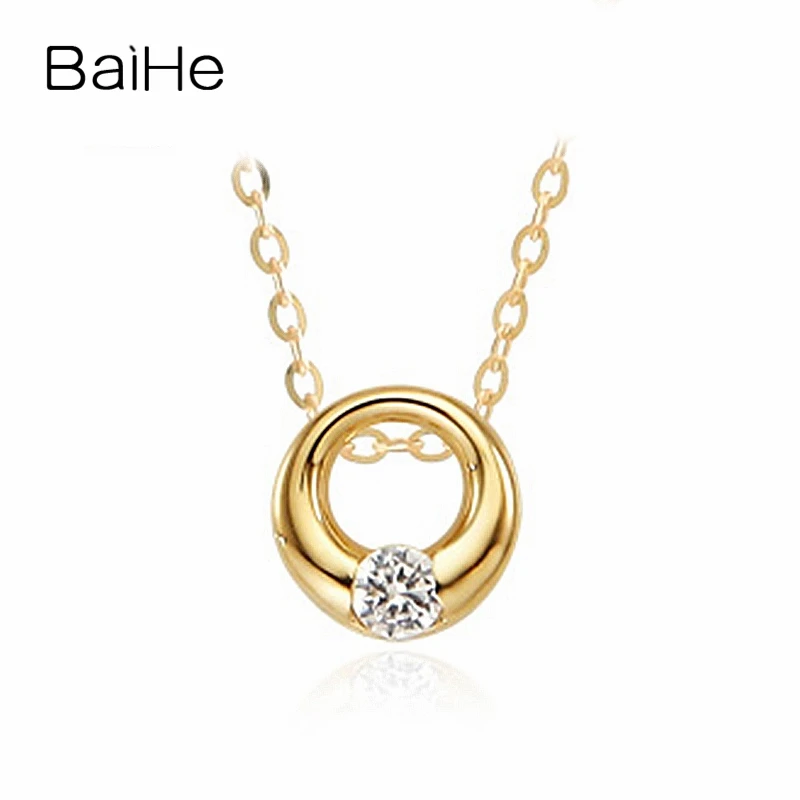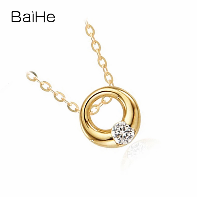 BAIHE Solid 18K Yellow Gold 0.07ct Certified 100% Genuine Natural Diamonds Women Trendy Wedding Fine Jewelry Elegant Necklaces