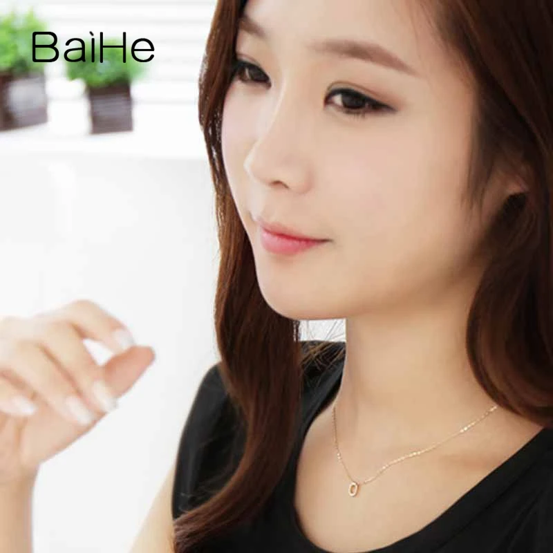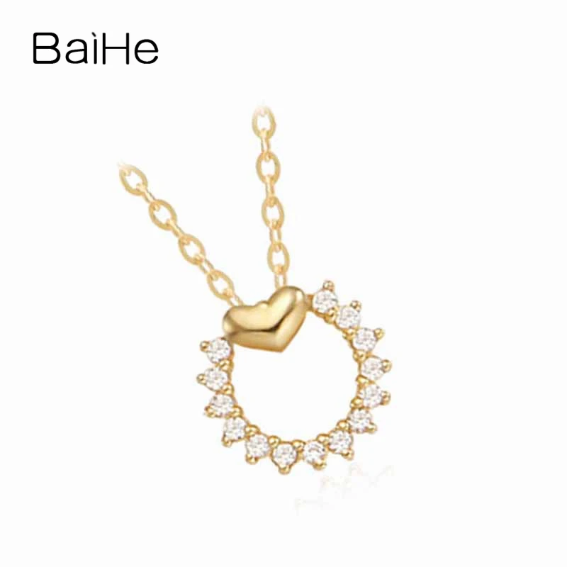 BAIHE Solid 18K Yellow Gold 0.07CT Certified Round cut 100% Genuine Natural Diamonds Women Wedding Jewelry Trendy Gift Necklaces
