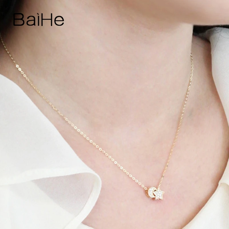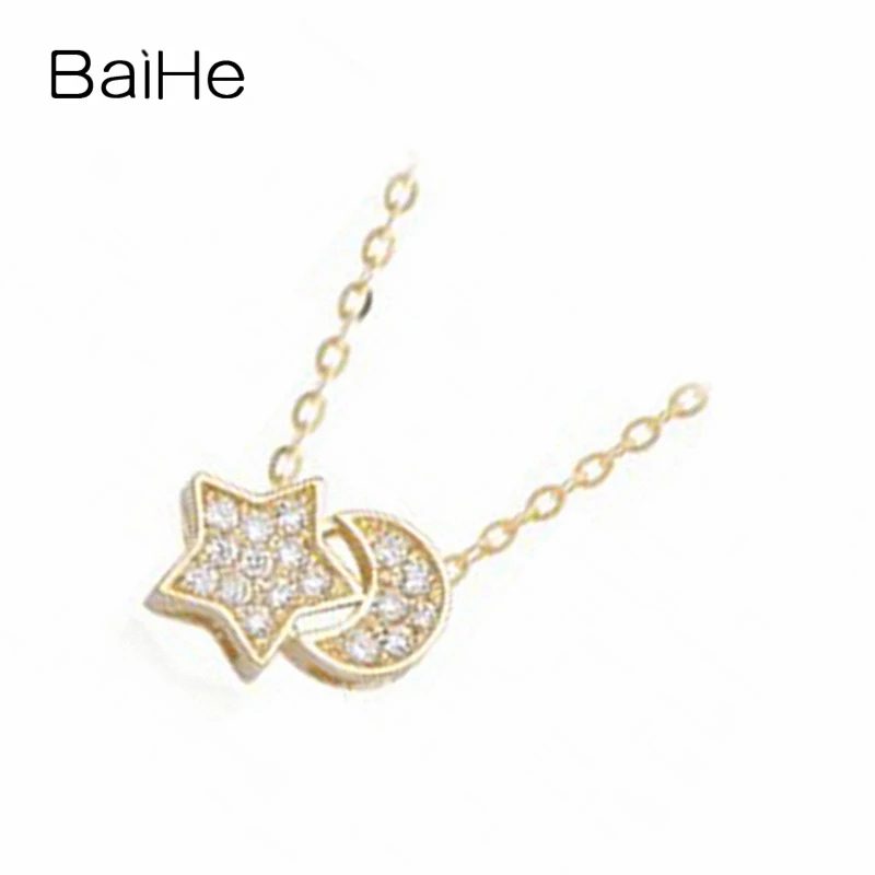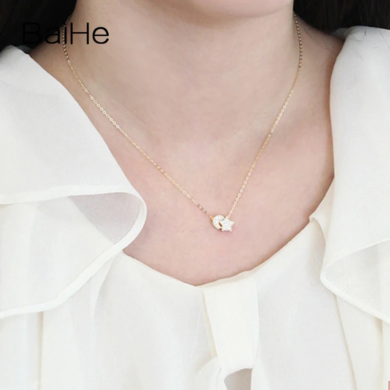 BAIHE Solid 18K Yellow Gold 0.08CT Certified H/SI Round 100% Genuine Natural Diamonds Women Engagement Fine Jewelry Necklaces