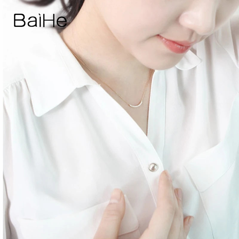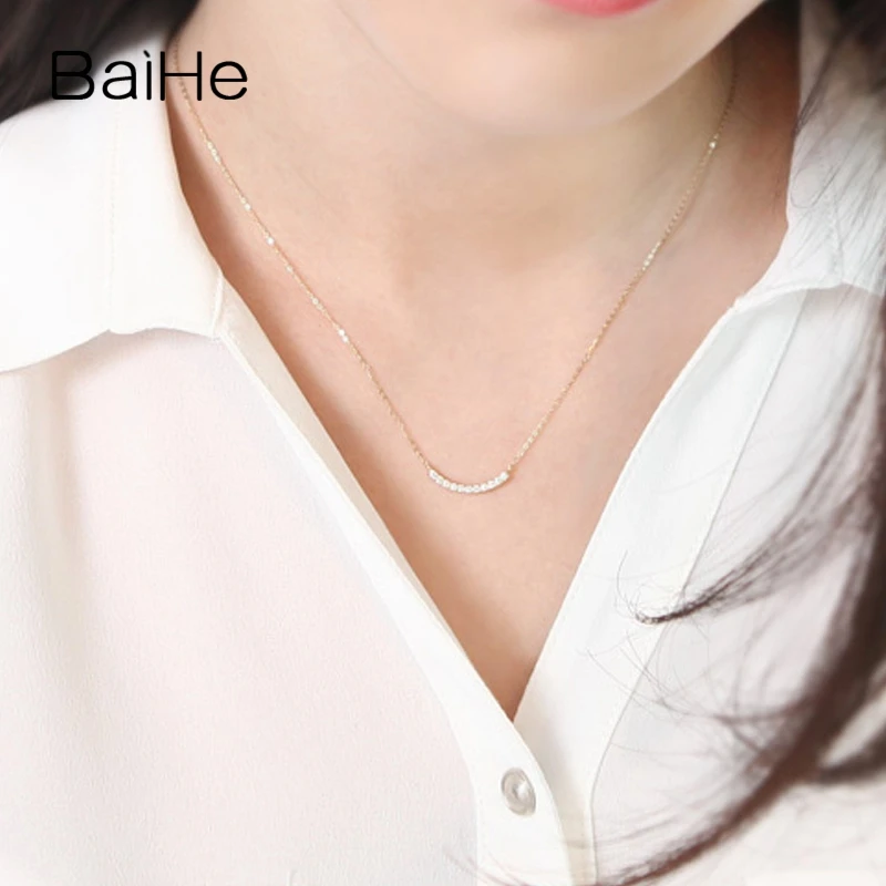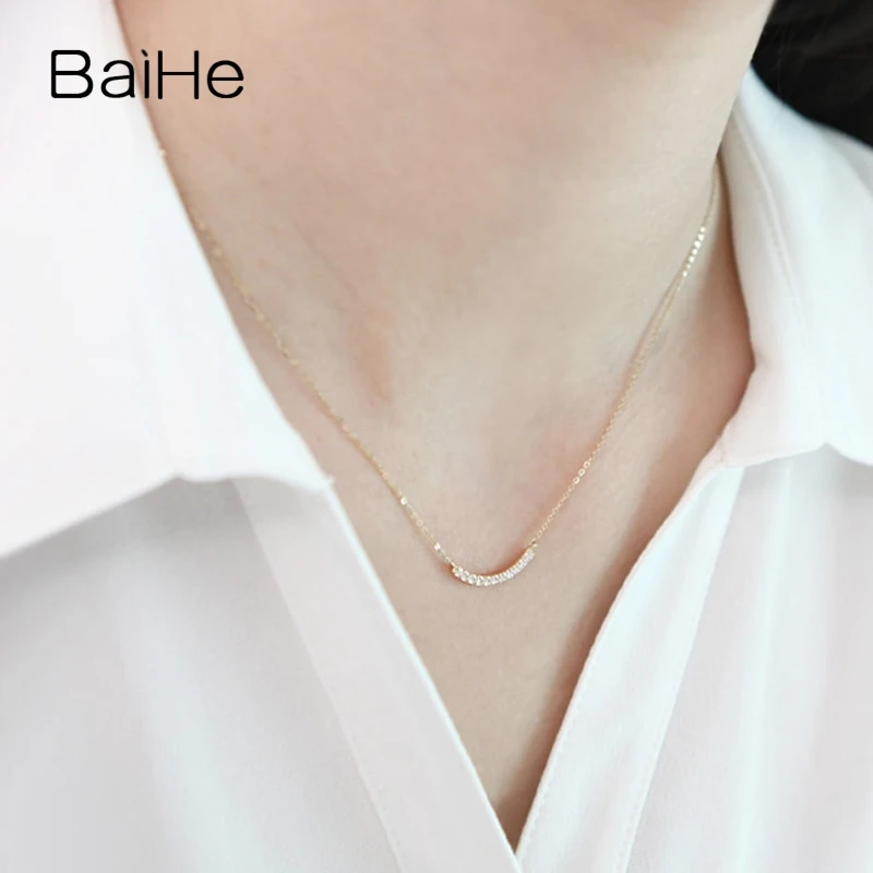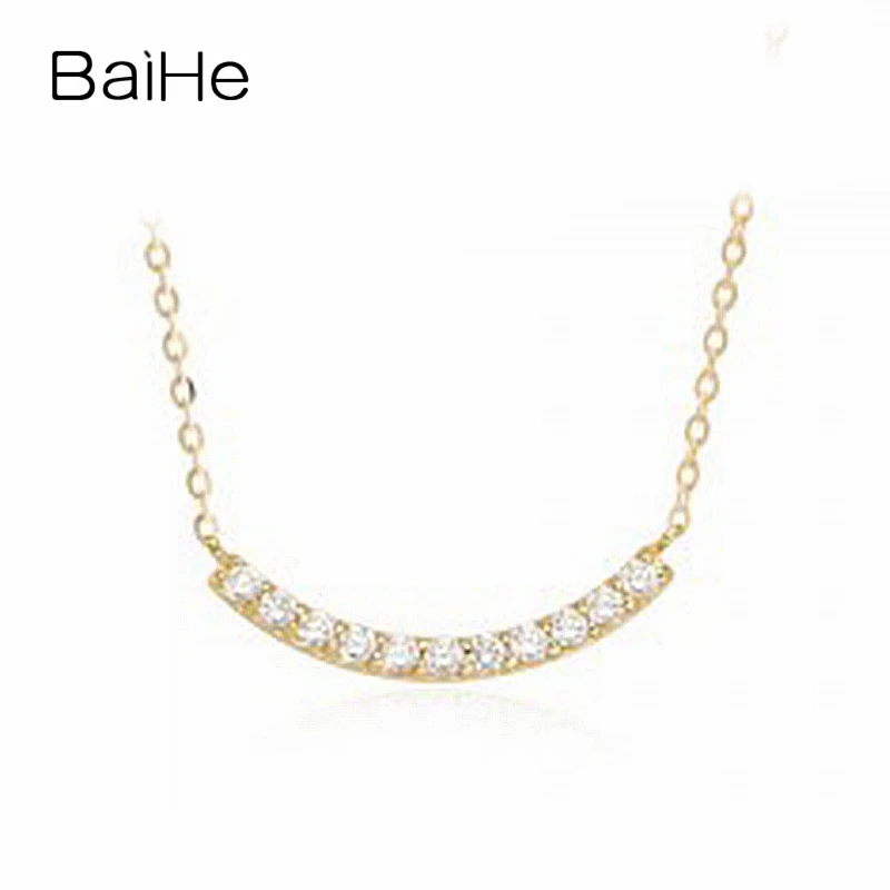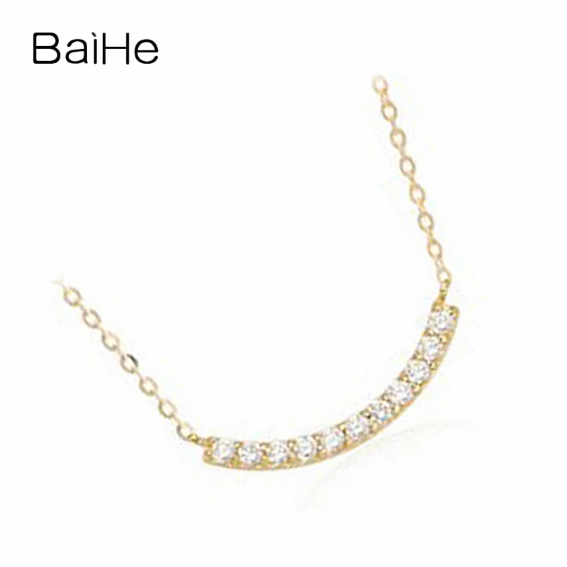 BAIHE Solid 18K Yellow Gold 0.11CT Certified Round 100% Genuine Natural Diamonds Women Engagement Trendy Fine Jewelry Necklaces