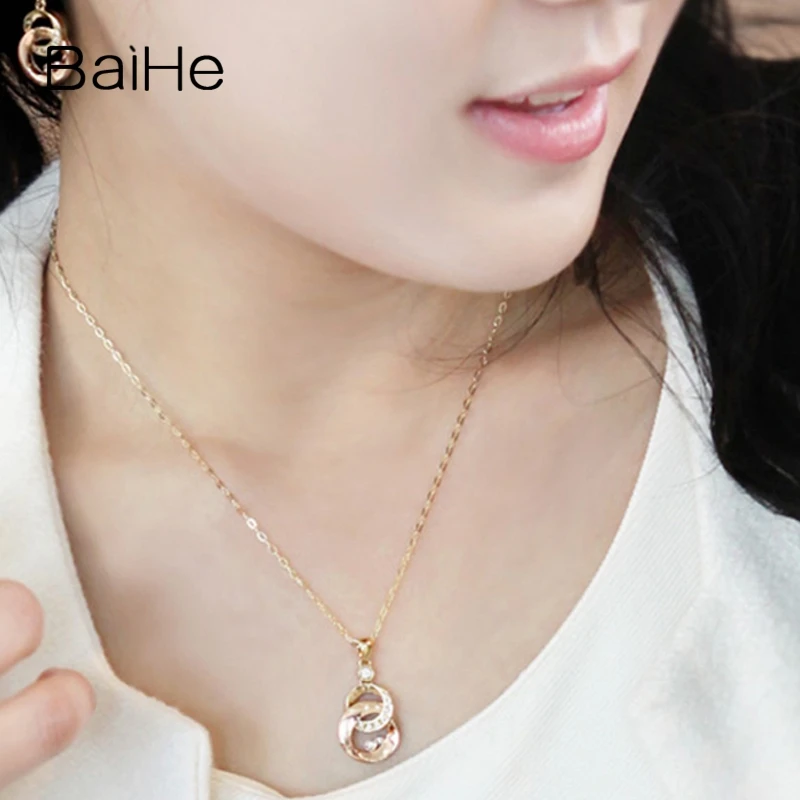 BAIHE Solid 18K Yellow Gold 0.11ct Certified Round 100% Genuine Natural Diamonds Women Trendy Engagement Fine Jewelry Necklaces