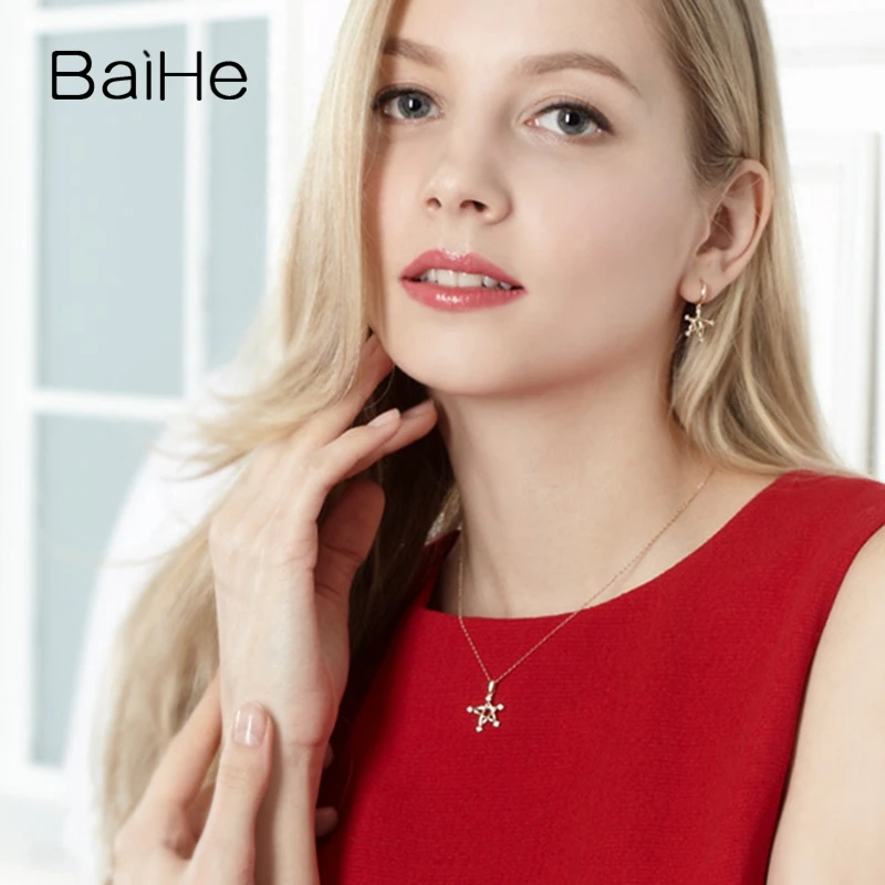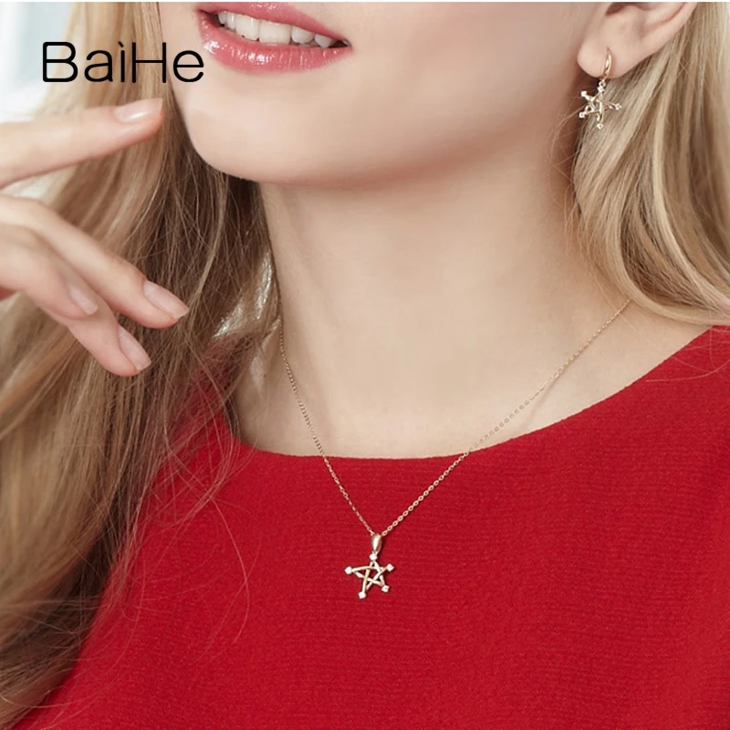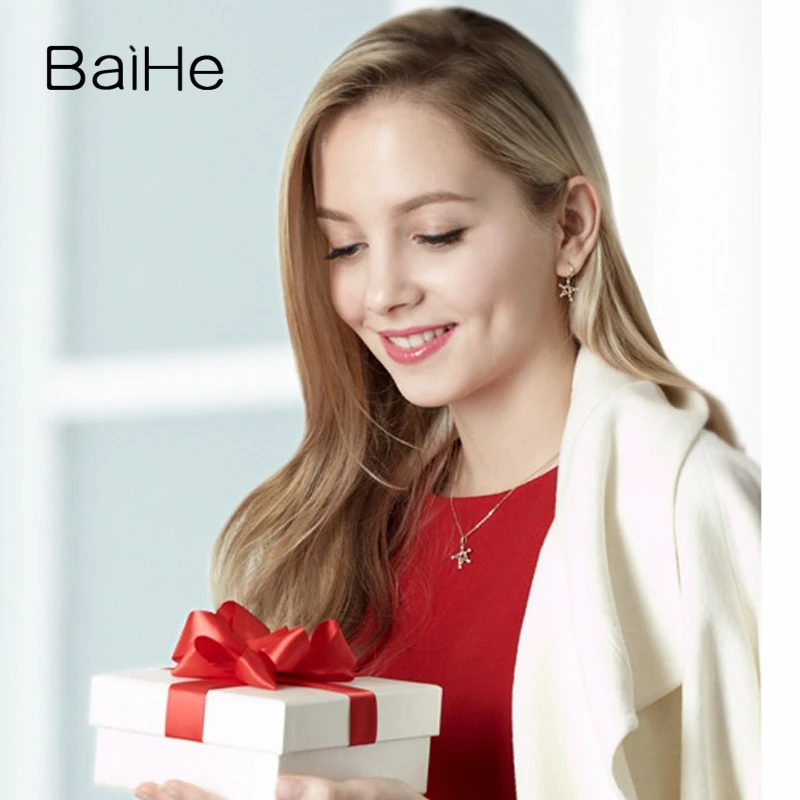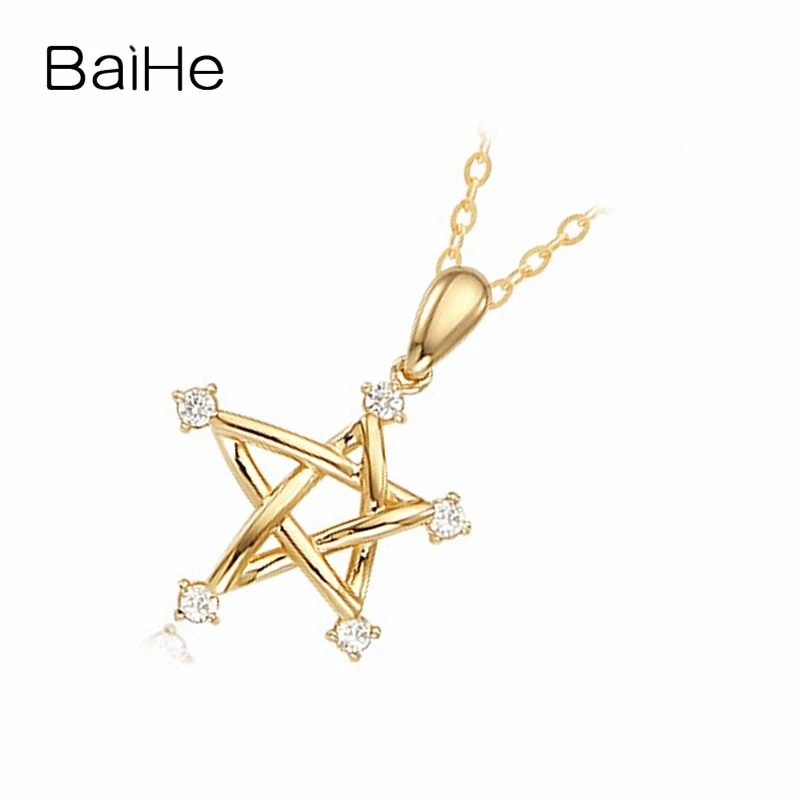 BAIHE Solid 18K Yellow Gold 0.17ct Certified Round CUT H/SI 100% Genuine Natural Diamonds Women Wedding Fine Jewelry Necklaces