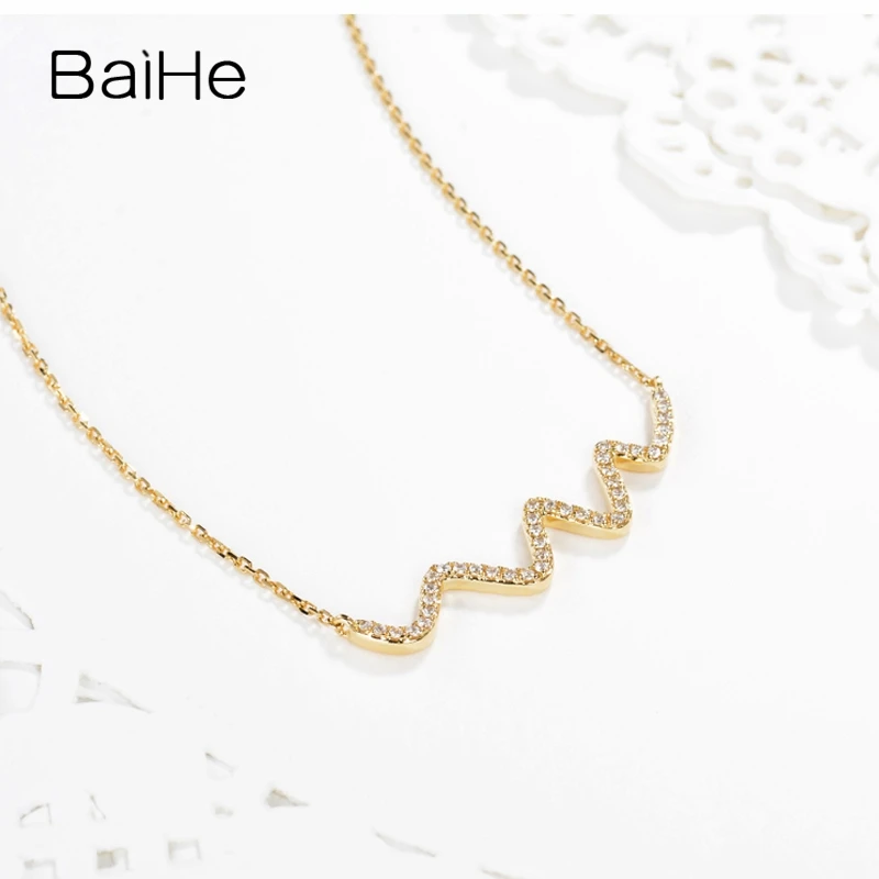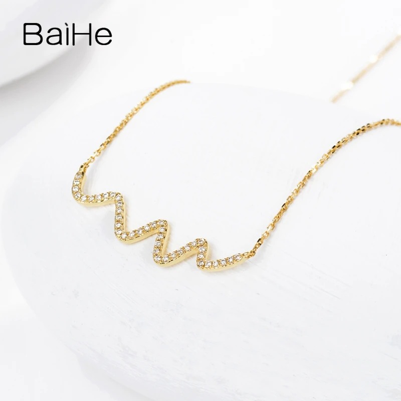 BAIHE Solid 18K Yellow Gold 0.18CT Certified H/SI 100% Genuine Natural Diamonds Wedding Women Trendy Fine Jewelry Gift Necklaces