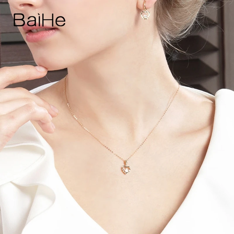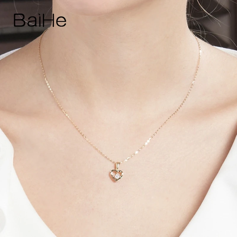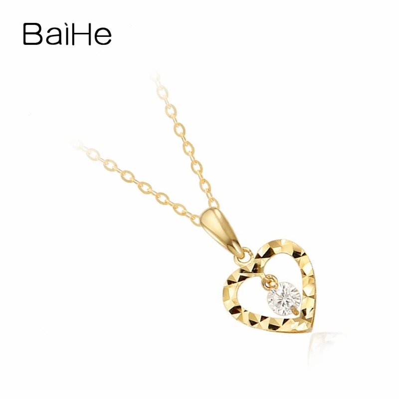 BAIHE Solid 18K Yellow Gold Certified 0.12ct Round cut 100% Genuine Natural Diamond Cute/Romantic Wedding Fine Jewelry Necklaces