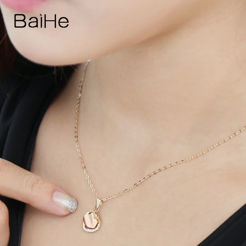 BAIHE Solid 18K Yellow & Rose Gold 0.05CT Certified Round 100% Genuine Natural Diamonds Women Engagement Fine Jewelry Necklaces