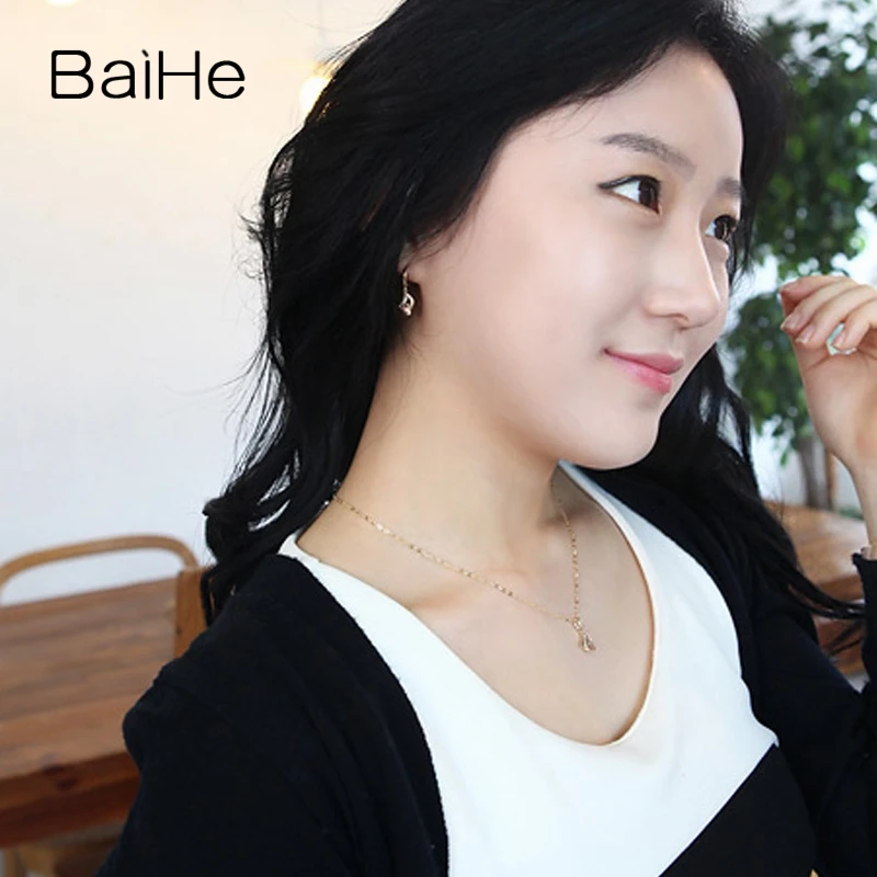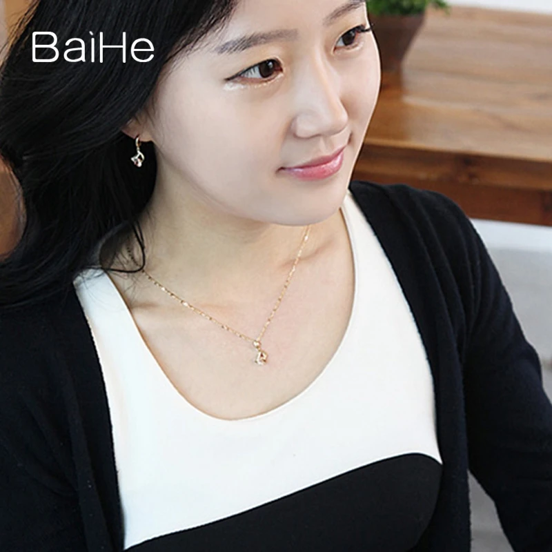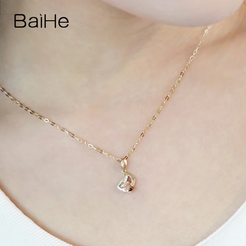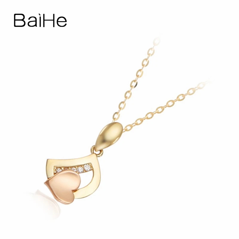 BAIHE Solid 18K Yellow & Rose Gold 0.05CT Certified Round CUT 100% Genuine Natural Diamonds Women Wedding Fine Jewelry Necklaces