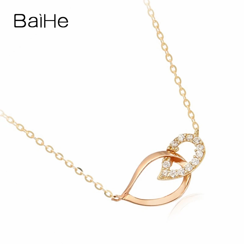 BAIHE Solid 18K Yellow & Rose Gold 0.08ct Certified Round 100% Genuine Natural Diamonds Women Wedding Jewelry Trendy Necklaces